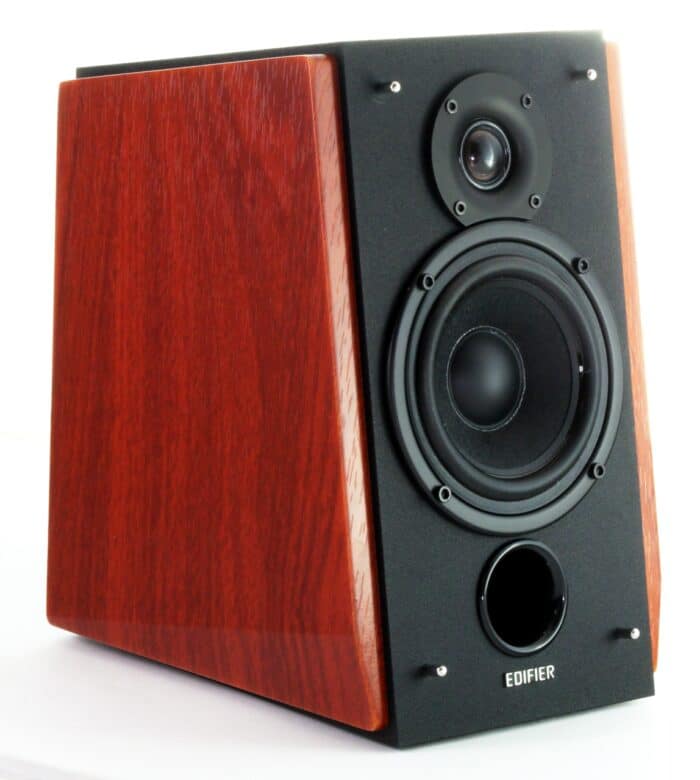 Für die optimale Klangqualität am Platz ist bei den meisten Lautsprechern noch die Höhe ein Problem. Da hohe Töne oft nur in einem engen Winkel abgestrahlt werden, sollten die Hochtöner idealerweise auf die Ohren des Zuhörers zeigen. Da eine identische Höhe von Hochtöner und Zuhörer oft nicht gegeben ist, hat Edifier die Vorderseite der R1700BT kurzerhand um 10° angewinkelt. Dadurch sitzt man erst dann in optimaler Position, wenn die Lautsprecher etwas niedriger sind als der Zuhörer.
