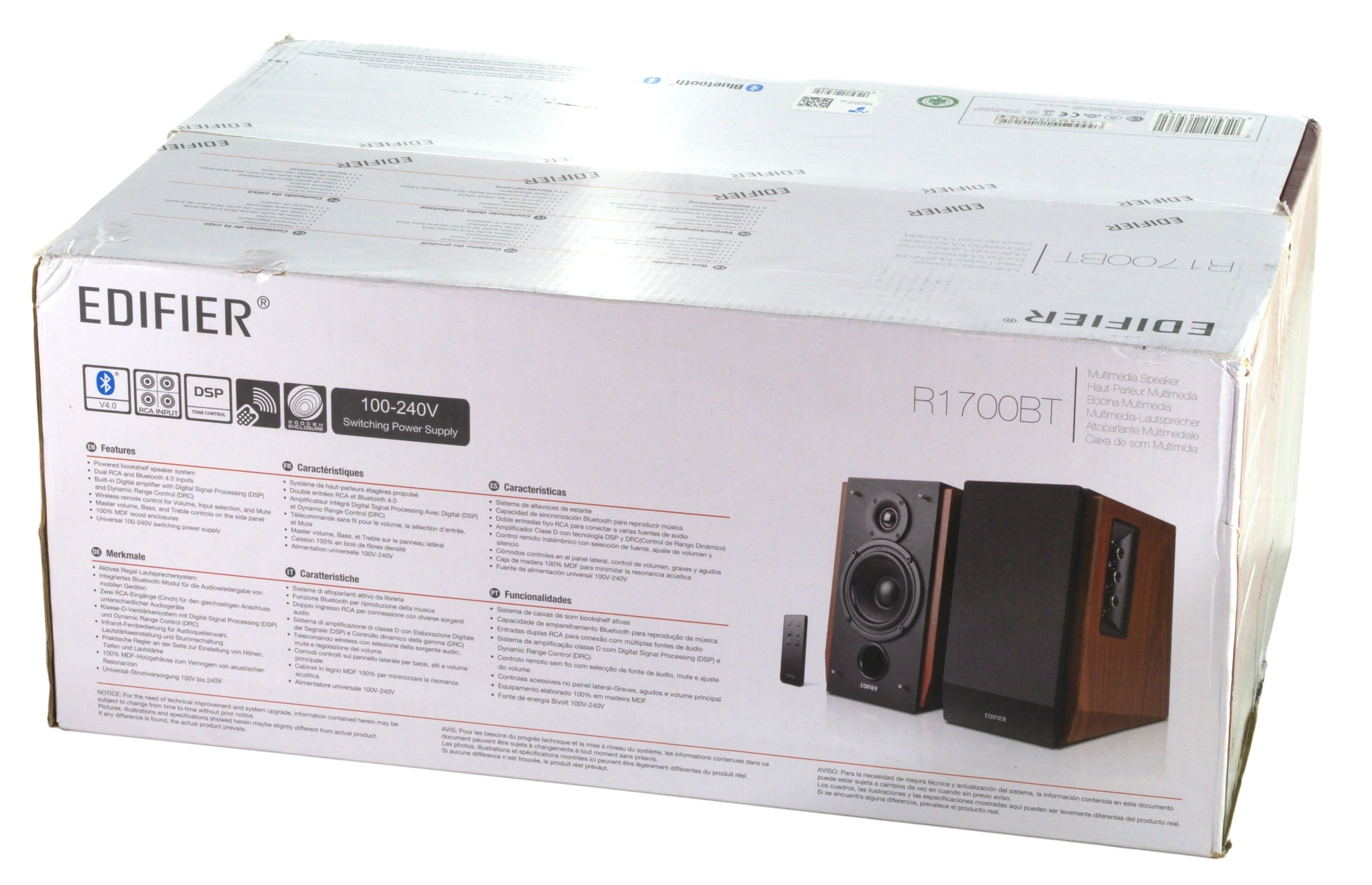 Dafür verspricht Edifier eine gute Klangqualität, die durch das Zusammenspiel von je einem 19-mm-Hochtöner und einem 4“-Tiefmitteltöner in einem MDF-Gehäuse erreicht werden soll. Außerdem werden die Lautsprecher beispielsweise auch mit einem Bluetooth-Support und einer Besonderheit beim Gehäuse beworben: Die in den R1700BT verbauten Lautsprecher sind mit 10° Neigung verbaut und strahlen somit leicht nach oben ab. Das wiederum soll die Aufstellung erleichtern.