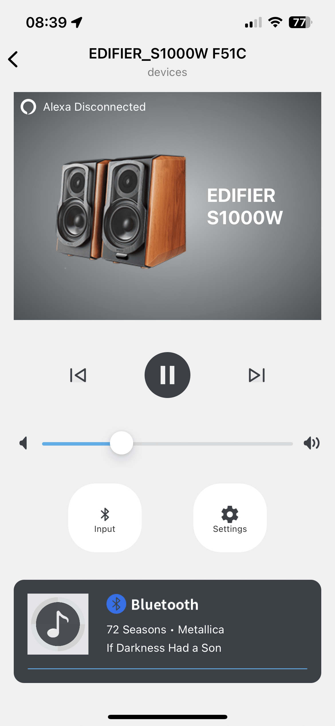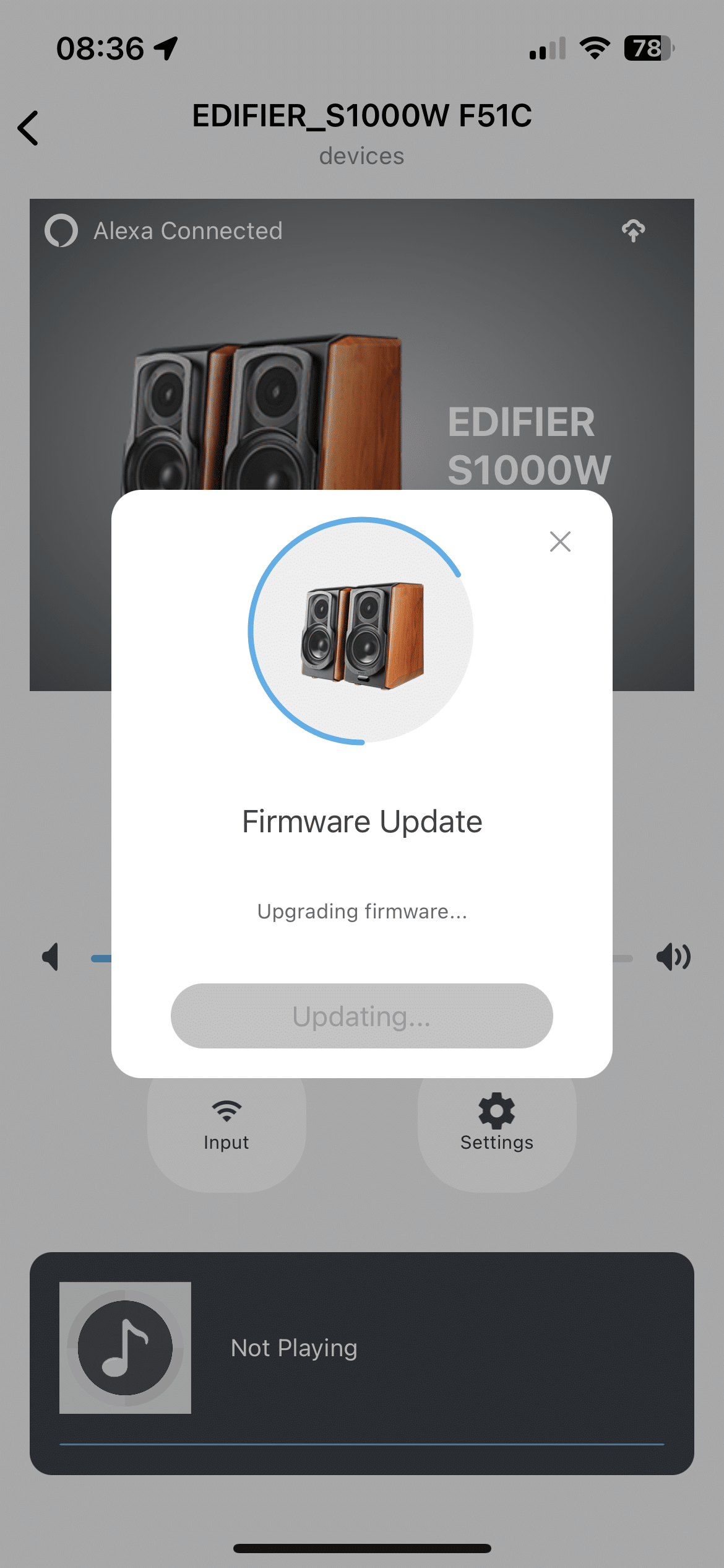 Neben der Möglichkeit, die Lautsprecher per Firmware-Update zu aktualisieren, bietet die App allerdings nur wenig Umfang, kann aber immerhin die Fernbedienung weitestgehend ersetzen. Die Lautstärke lässt sich in der App anpassen, außerdem kannst du hier die Quelle ändern und die Verbindung zum eigenen Amazon-Account anstoßen. Mehr gibt es hier leider nicht zu sehen.