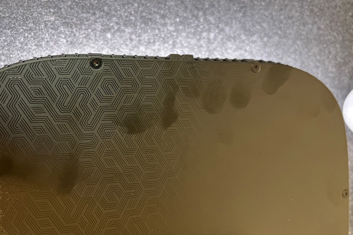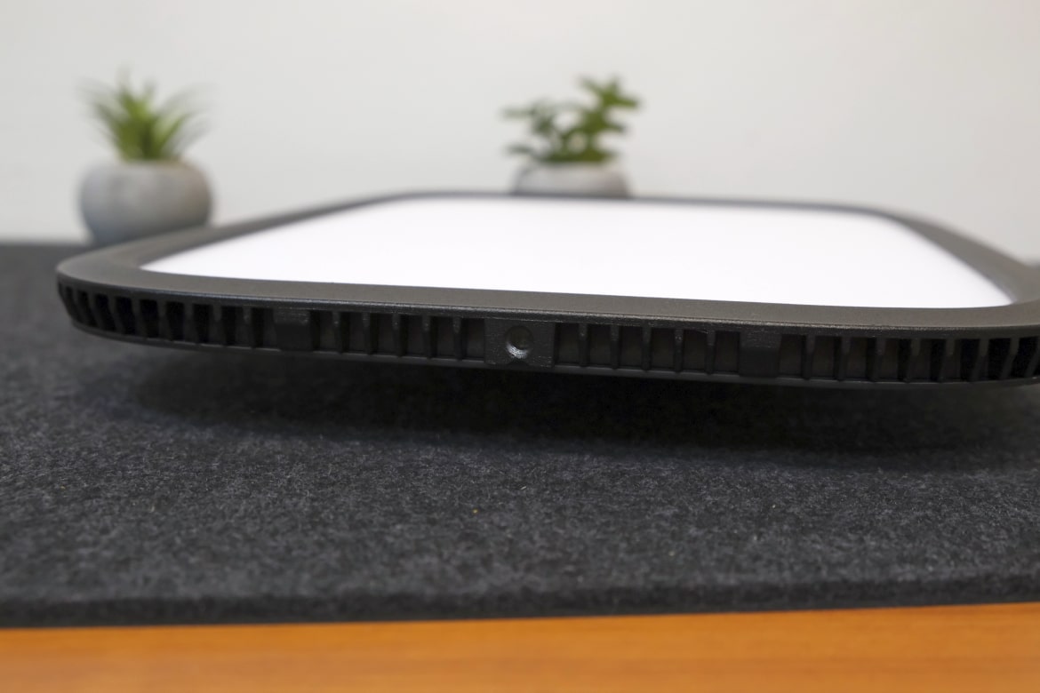 Ansonsten fühlen sich alle Bestandteile robust und hochwertig aus. Etwas zu bedenken gibt uns jedoch, dass das LED-Panel selbst an den Ecken unter Druck etwas nachgibt und dabei ein leicht besorgniserregendes Knacken von sich gibt. Ob es sich dabei um einen Produktionsfehler bei unserem Testmuster handelt und ob das Auswirkungen auf die Langlebigkeit hat, ist unklar.
