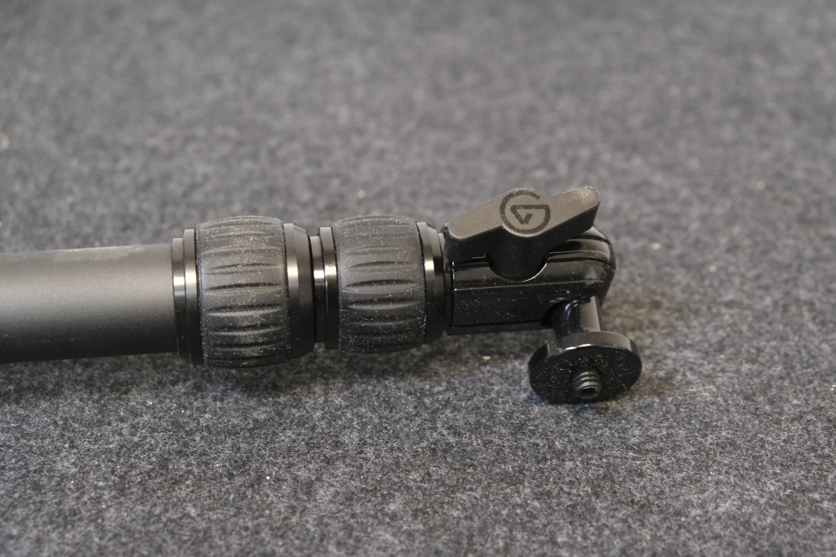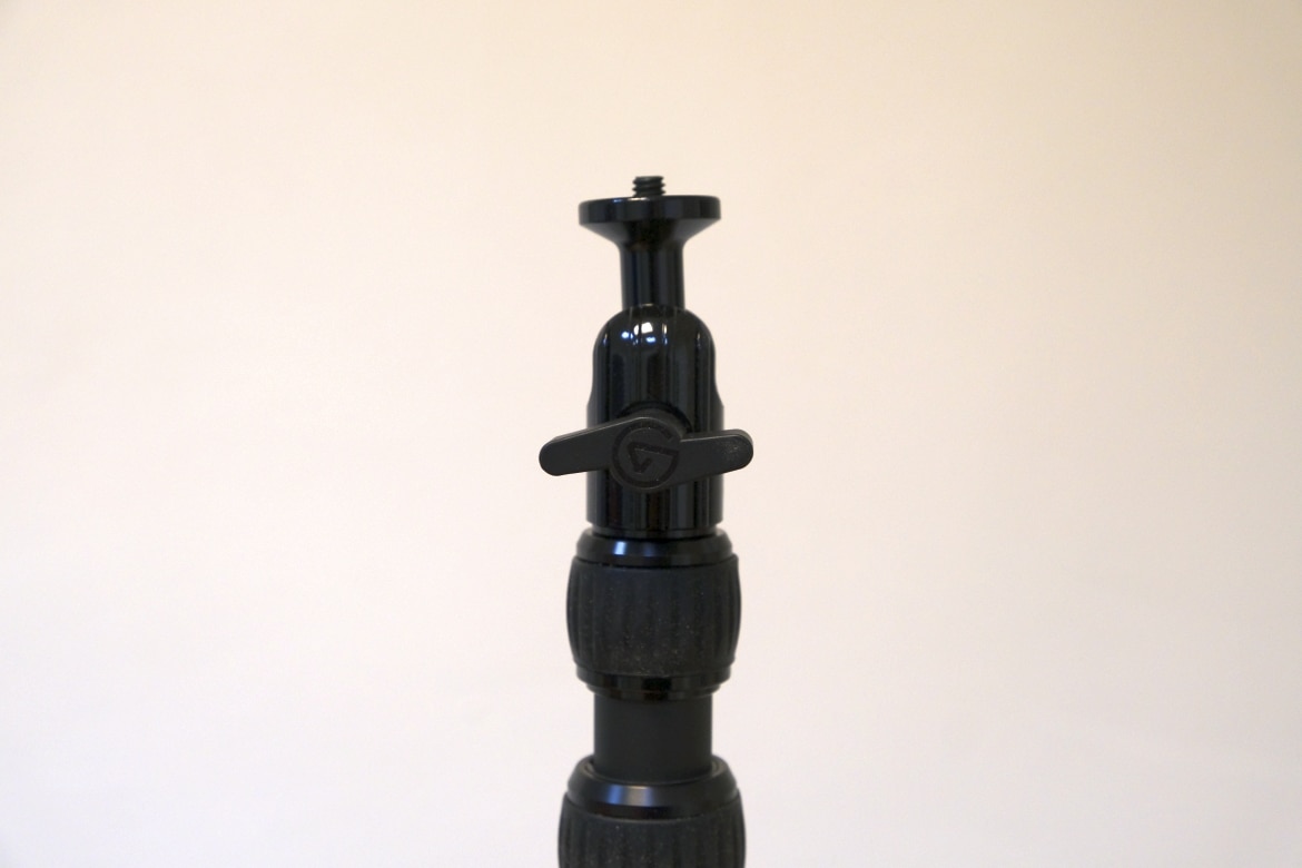 Ganz oben sitzt zudem eine Kugelkopfhalterung, in die das Key Light einfach eingeschraubt wird. Mithilfe der darunter liegenden Schraube samt Herstellerlogo lässt sich das Leuchtpanel so drehen, kippen und frei in die gewünschte Position bringen.