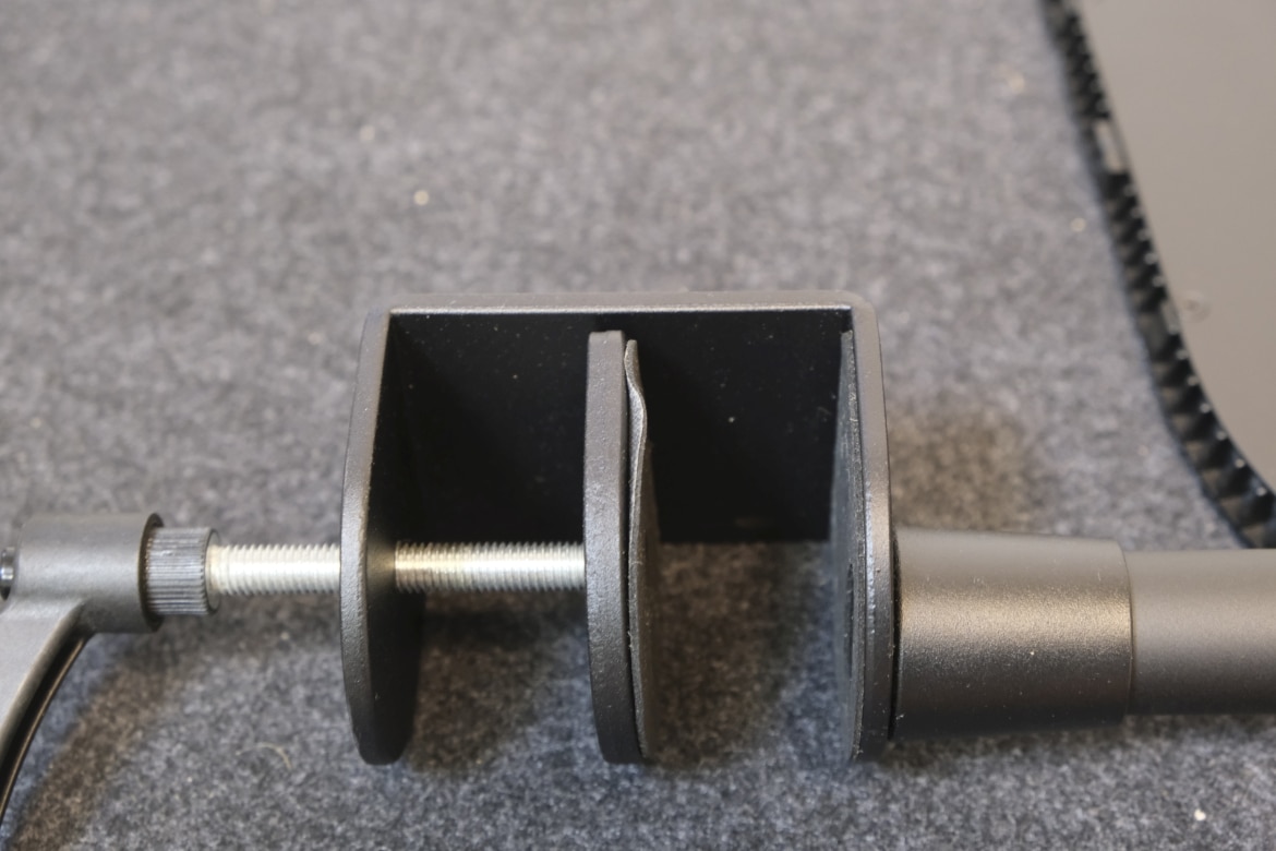 Sehr gut gefällt uns das beiliegende Master Mount L, bei dem sich der Hersteller wirklich Gedanken gemacht hat. So verfügen beispielsweise beide Innenflächen der Tischbefestigung über eine gummierte Oberfläche (die allerdings ebenfalls nicht vollkommen sauber verarbeitet ist), während die massiven Metall-Befestigungen einen sicheren Halt garantieren.