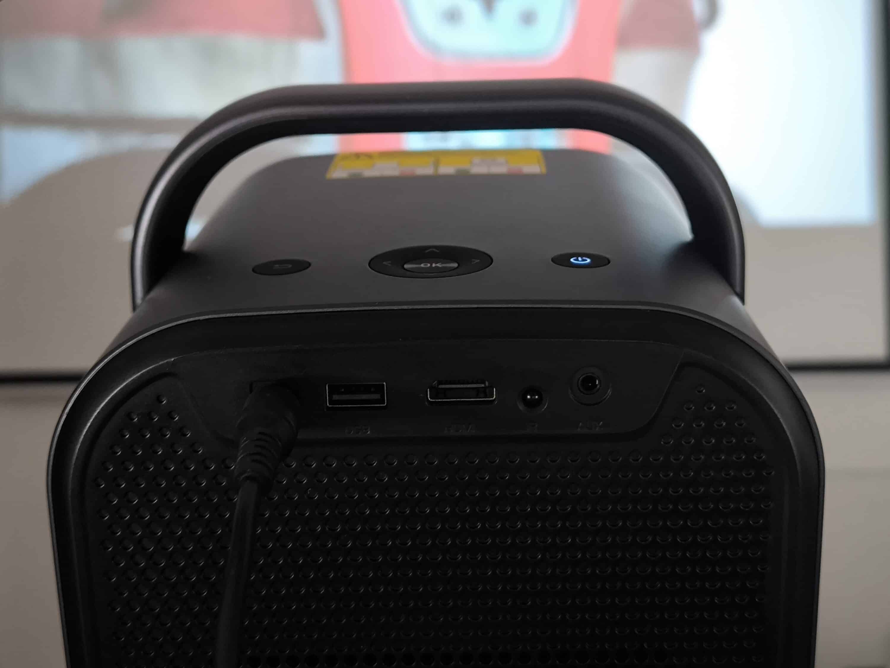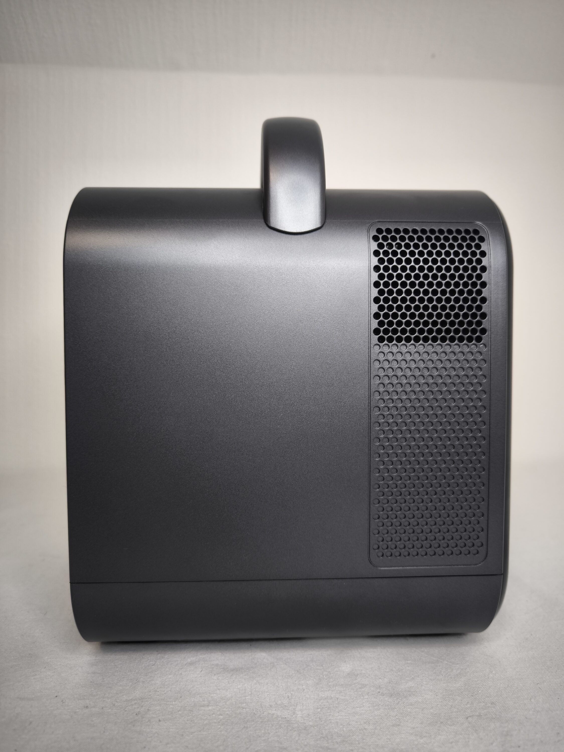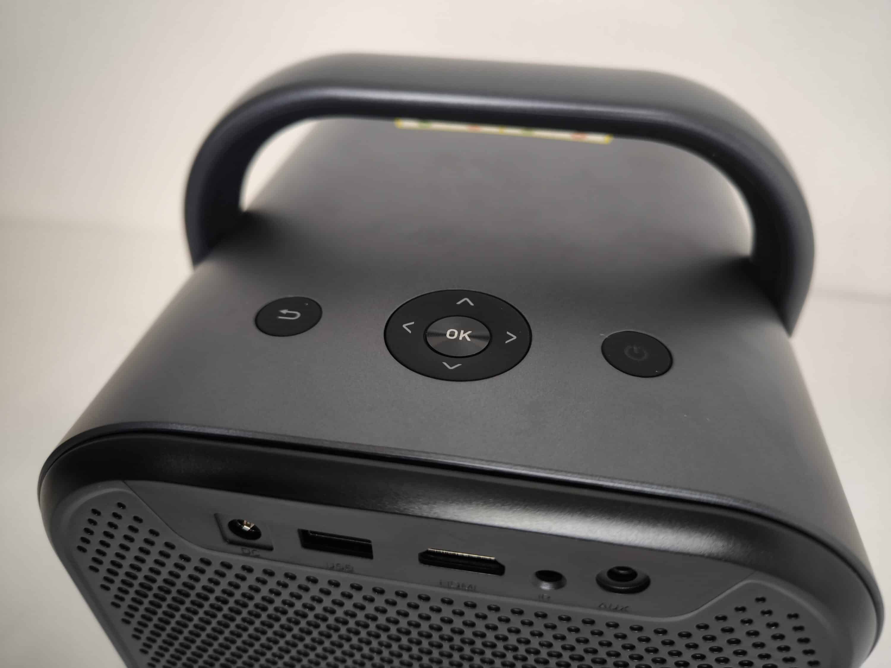 Zugegebenermaßen sind die beiden Lüfter im Betrieb permanent wahrnehmbar. Bei Filmen, Videos oder laufender Musik geht das natürlich schnell unter, ist aber durchaus erwähnenswert. Wem die Fernbedienung zu umständlich für langes Tippen ist, der kann natürlich auf den Google Assistant zurückgreifen. Zwar wird hier nicht jede Anfrage auf Anhieb richtig erkannt, aber dennoch ist man in der Regel schneller als beim manuellen Suchen der Buchstaben. Möchte man den ETOE Seal Pro Beamer spontan für unterwegs mitnehmen, dient der Tragegriff an der Oberseite zum bequemen Transport.