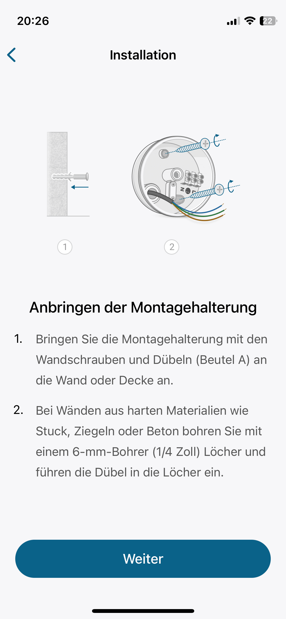 Das ist aus zwei entscheidenden Punkten auch Eufy zu verdanken. Zum einen legt die Anker-Tochter mit Schrauben, Dübeln und Bohrschablone das für die Montage notwendige Werkzeug direkt dem Lieferumfang bei. Weiterhin erhältst du in der App eine idiotensichere Schritt-für-Schritt-Anleitung, die dir bei der Montage hilft.