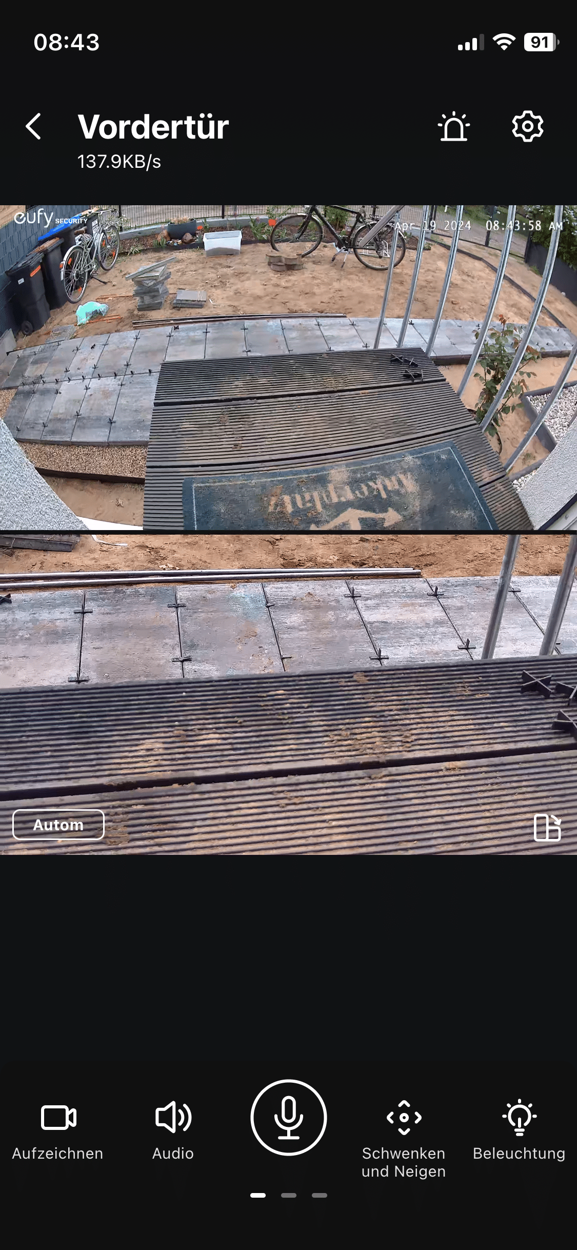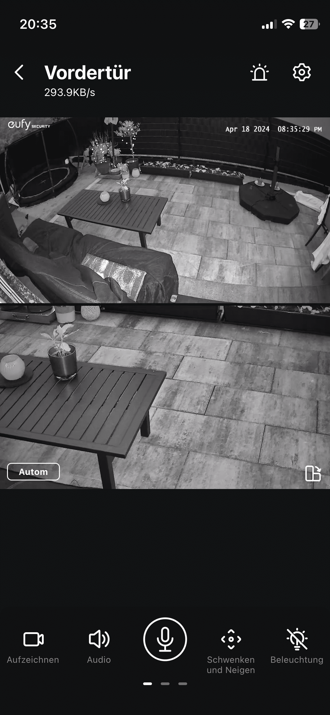 Doch das sind nicht die einzigen Vorteile, die du im Zusammenspiel mit der Schaltzentrale von Eufy erhältst. Welche es noch gibt, klären wir später. Sobald die Kamera über die App hinzugefügt wurde, kannst du sie auf der Startseite von Eufy Security erblicken. Angezeigt wird dabei das zuletzt aufgenommene Bild. Für nähere Einstellungen musst du einfach auf die Kamera klicken.