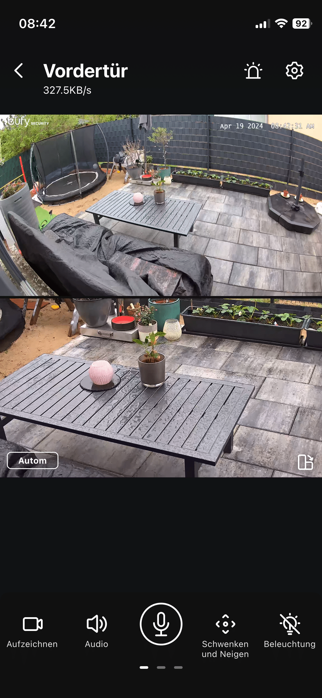 Wenn sich die Lichter einschalten, sorgt das aber nicht nur für coole Nachtaufnahmen. Obendrein bieten sich die beiden LED-Einheiten als ansehnliche Beleuchtung für Terrasse oder andere Außenbereiche an. Hierfür kannst du sie einfach dauerhaft aktivieren. Dann leuchten sie nicht nur bei Bewegungserkennung. In der App kannst du eigens für die Beleuchtung sogar einen Zeitplan festlegen.