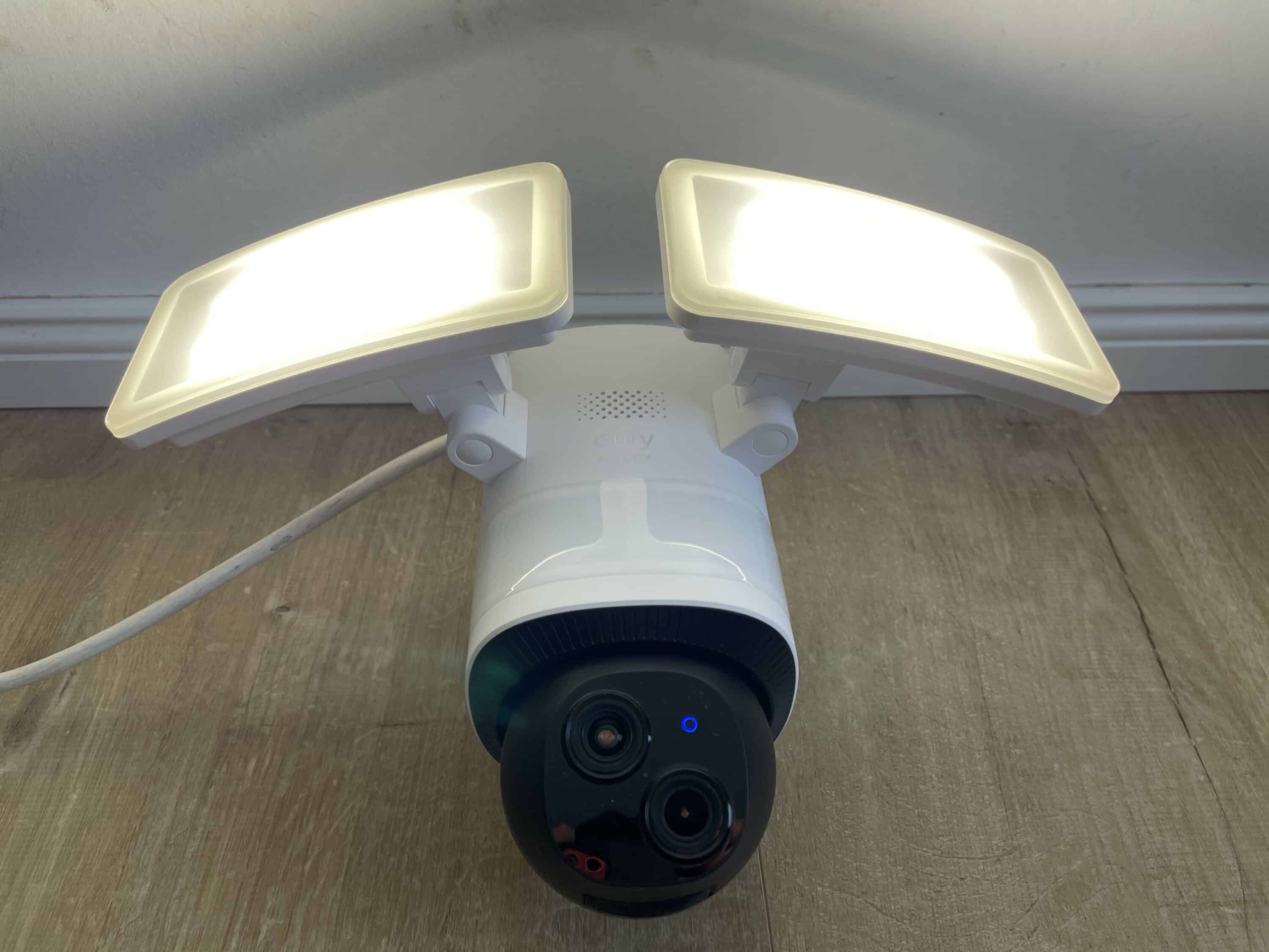 In diesem Fall verfolgt die Kamera automatisch eine Bewegung und kehrt anschließend in die Ausgangsposition zurück. Selbstredend kannst du auch die Leistung der beiden Flutlichter anpassen. Dabei lässt sich die Helligkeit nach Lust und Laune regulieren.