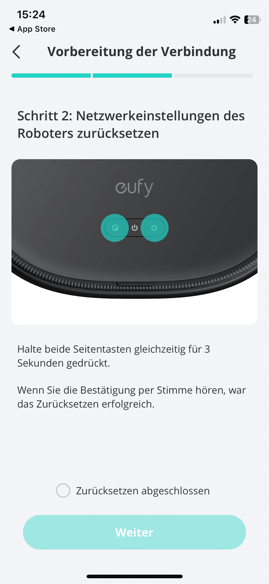 Hierbei macht sich wieder das übersichtliche Design der App bezahlt. Du bekommst eine Schritt-für-Schritt-Anleitung, die dir idiotensicher erklärt, was du bei der Einrichtung zu tun hast. Im Anschluss daran steht die erste Jungfernfahrt des Saugroboters in deinen eigenen vier Wänden an.