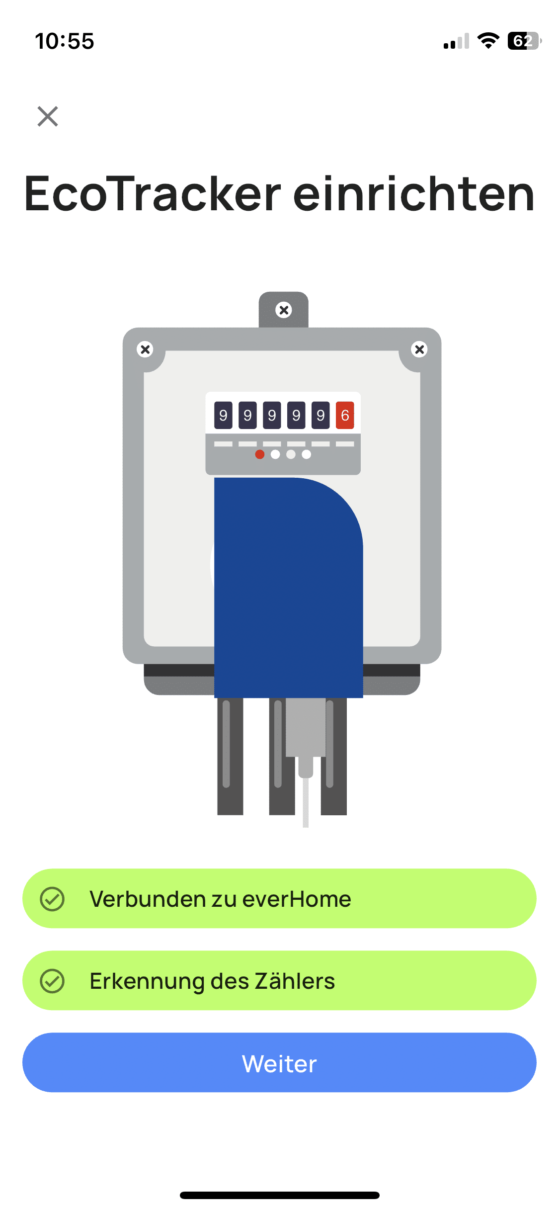 Für das reibungslose Funktionieren des EcoTracker legt everHome dem Lieferumfang alles bei. Allerdings wirkt der auffällig blaue Tracker im Stromkasten mitunter wie ein Fremdkörper. Das liegt nicht an der auffälligen Farbgebung. Vielmehr ist es bei manchen Zählern nicht möglich, das Gadget direkt zu verbinden. Ich hatte hier durchaus Glück. So ließ sich der EcoTracker in meinem Fall unmittelbar am Zähler selbst befestigen. Hier kam der Magnet zum Tragen. Dadurch musste ich mich um keine separate Halterung bemühen.