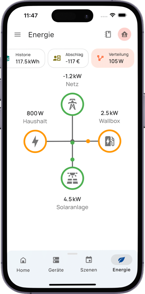 In der Regel ist es dann so, dass du erst in den Abendstunden bei der Zubereitung des Abendbrots, der Hausbeleuchtung, dem abendlichen Fernsehgenuss und auch Haushaltsaufgaben wie Wäsche waschen Strom verbrauchst. Da die Sonne dann erfahrungsgemäß nur noch schwach scheint oder gar nicht mehr am Himmel zu erkennen ist, nützt dir deine PV-Anlage dann natürlich gar nichts. Ein passender Speicher sammelt den tagsüber produzierten Strom und stellt ihn dir für den abendlichen Verbrauch zur Verfügung. Doch der EcoTracker spielt hier auch seine Kompatibilität zum eigenen Smart-Home-Kosmos aus. So kannst du nämlich kompatible Geräte anweisen, Strom auch tatsächlich zu verbrauchen, wenn deine PV-Anlage gerade einen Überschuss hat und ein Einspeisen droht. So kannst du beispielsweise eine smarte Steckdose aktivieren lassen, über die dein E-Auto oder Plug-in-Hybdrid angeschlossen ist. Auch das Laden einer Powerstation über die smarte Steckdose ist dann denkbar. So wird bei Überschuss kein Strom verschwendet. Solche und weitere denkbare Automatisierungen können eine echte Bereicherung für den Alltag darstellen.