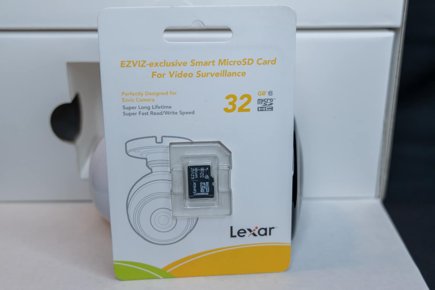 Für unseren Test wurde uns vom Hersteller EZVIZ außerdem eine 32GB SD-Speicherkarte von Lexar mit hoher Haltbarkeit und Schreib-/Leserate (UHS-I, Class 10) zur Verfügung gestellt, welche speziell für den Einsatz in EZVIZ-Geräten optimiert ist. Neben dieser hat EZVIZ auch Karten in den Größen 16, 64 und 128 Gigabyte im Sortiment, die, wie unser Exemplar, ausdrücklich zur dauerhaften Videoaufzeichnung geeignet sind.