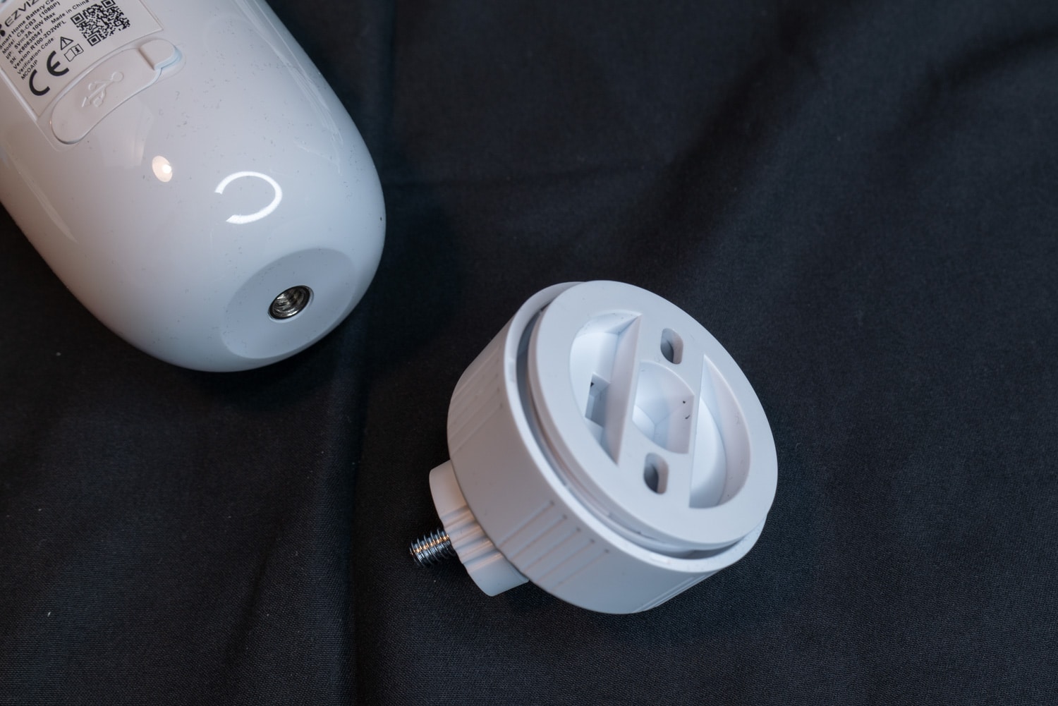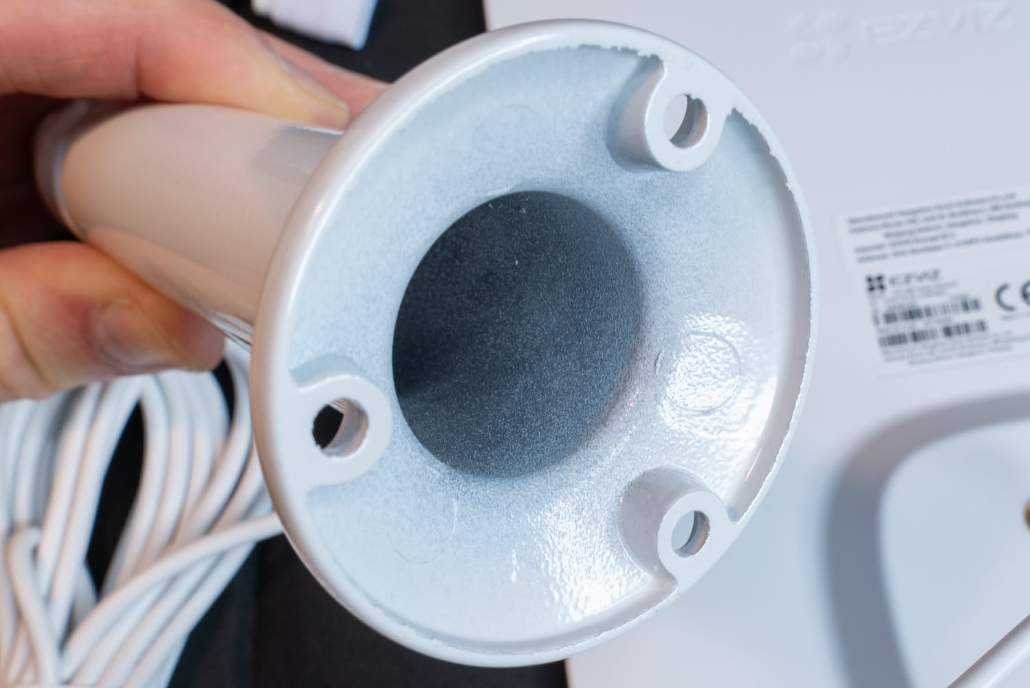 Die CB3 besitzt eine zerlegbare Halterung, deren Basis zuerst an der Wand angebracht werden kann. Ist die Basis fest mit der Wand verschraubt, können Kamera und Solarpanel mit der Basis vereint werden, was die Anbringung deutlich erleichtert. Die CB3 verfügt hierfür über ein standardisiertes 1/4 Zoll Stativ-Gewinde (0,635mm) und eine Kontermutter zum Fixieren. Das Gewinde reicht nicht sehr tief in die Kamera hinein.