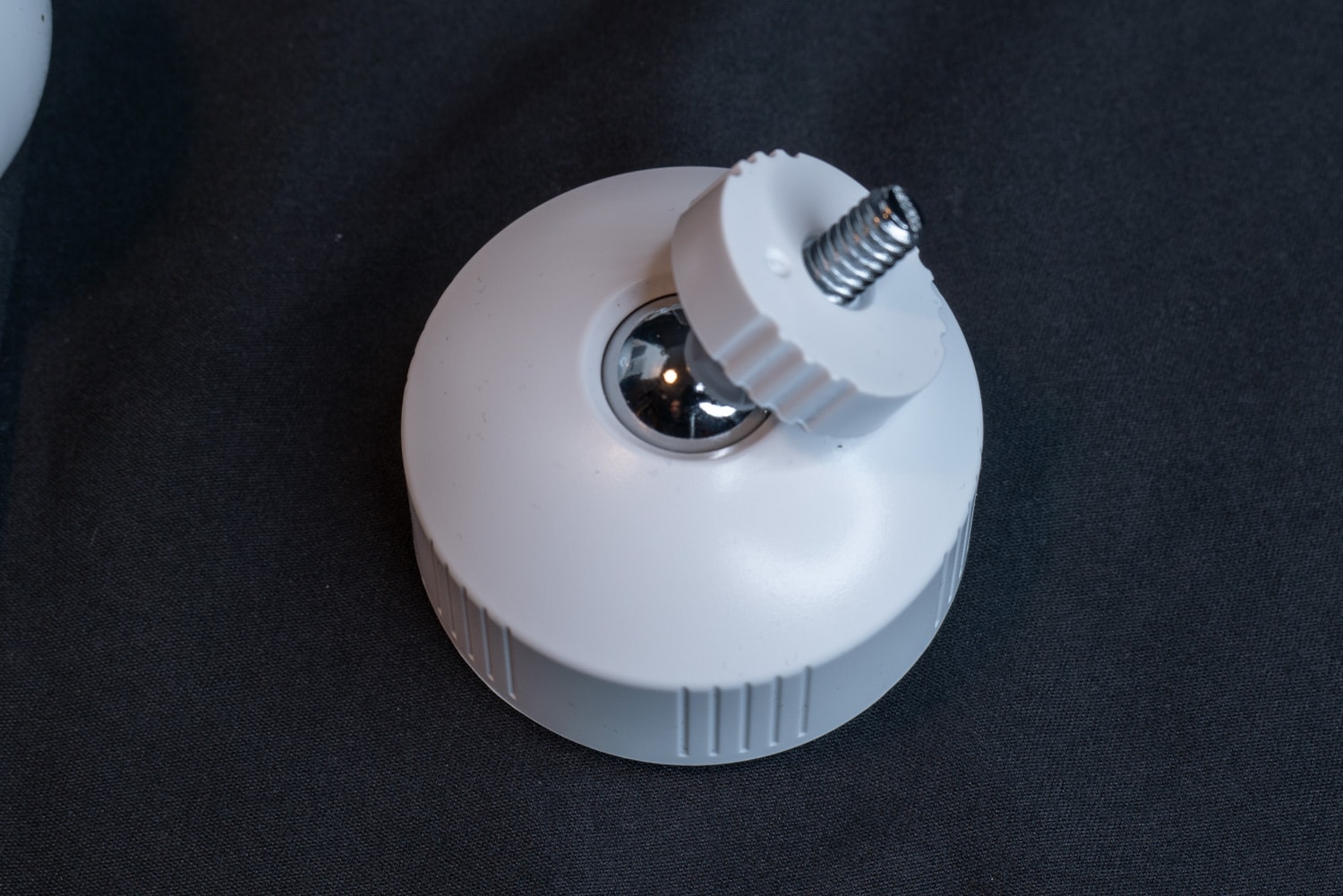 Am metallenen Kugelgelenkkopf der CB3 fanden wir einen unschönen Gussgrat, der zumindest während der Montage die Funktion des Kugelgelenks beeinträchtigen könnte. Auch ist die CB3 über ihr Kugelgelenk nicht besonders praktisch auszurichten.