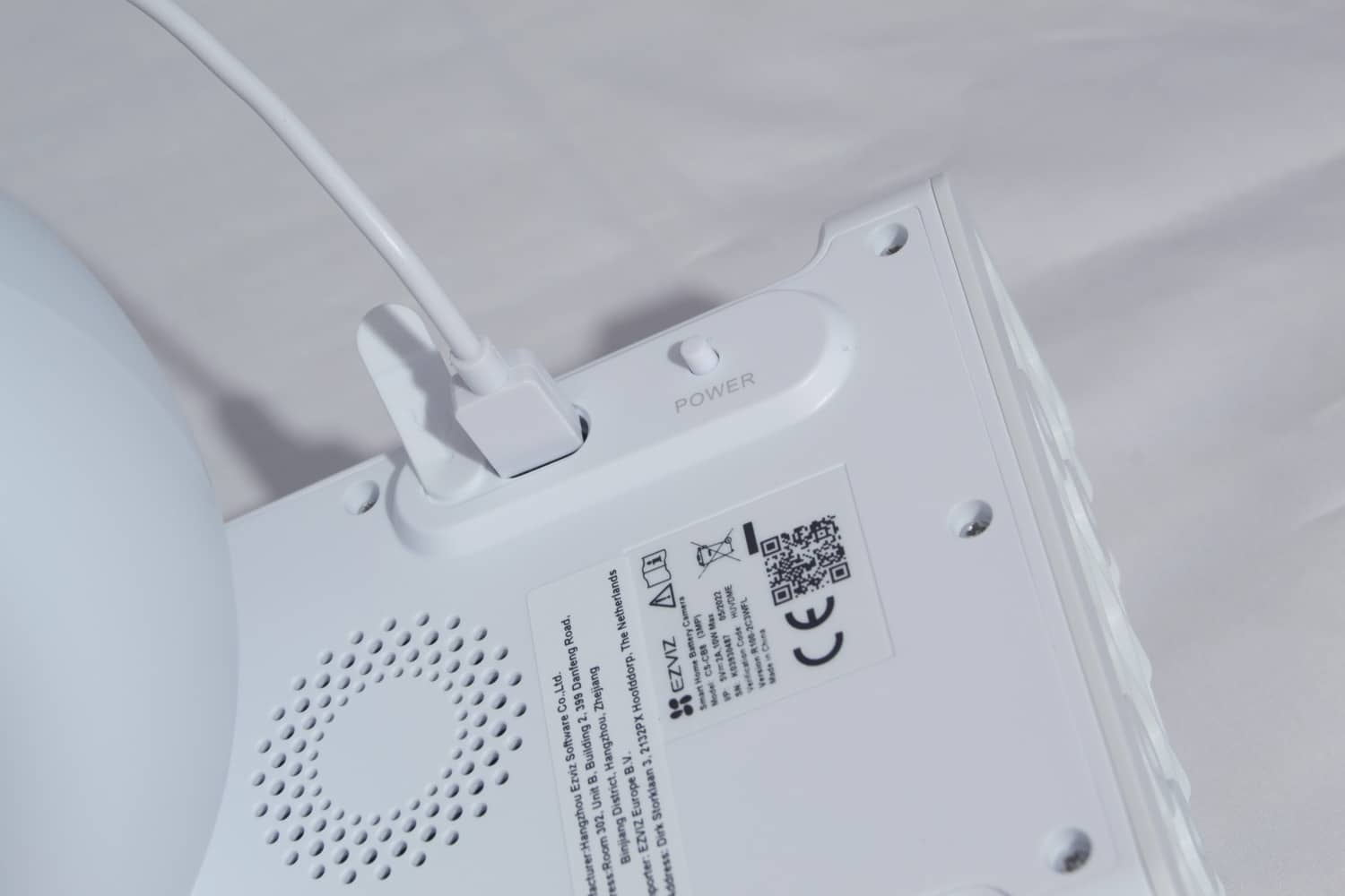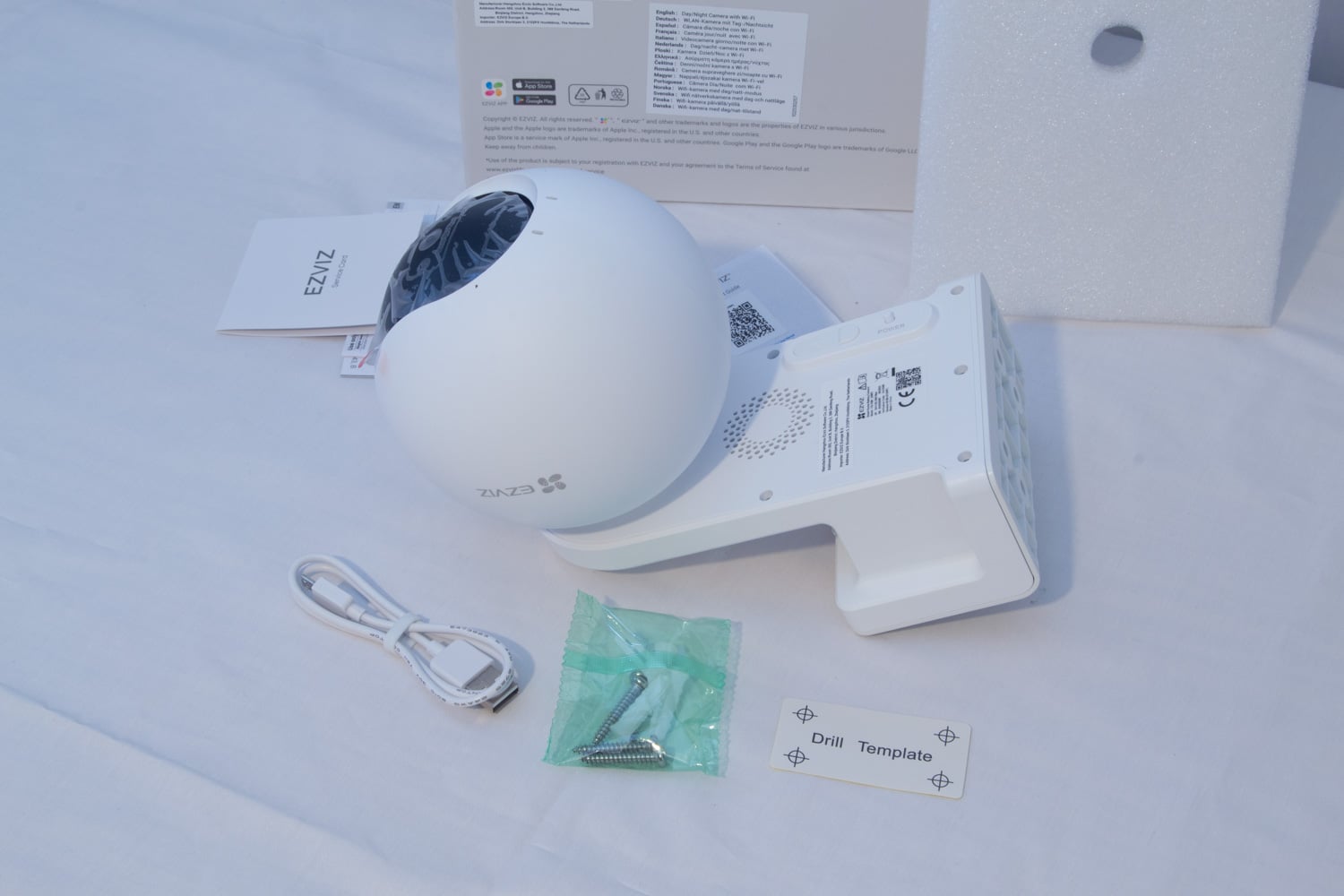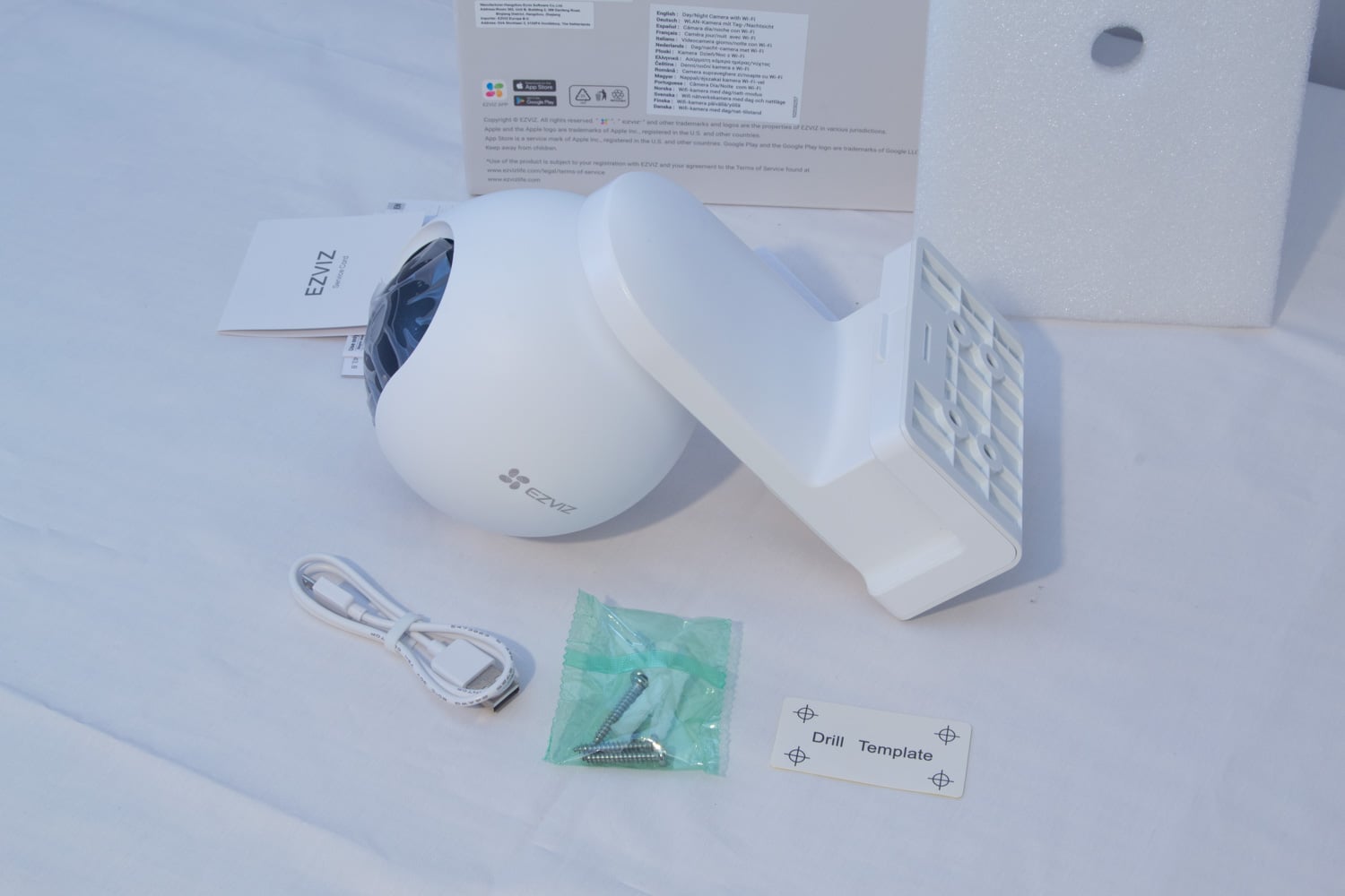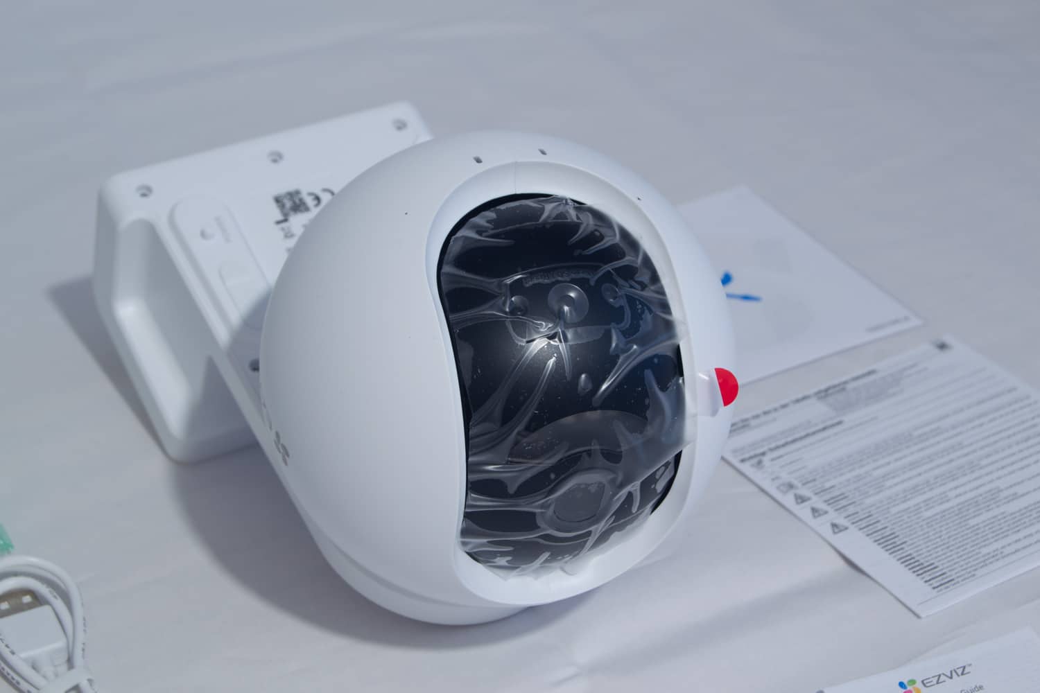 Das Design der EZVIZ CB8 ähnelt dem gängigen Aufbau für schwenkbare Überwachungskameras für den Außenbereich, welche üblicherweise an Hauswänden befestigt werden. Die Kamera ist vertikal beweglich in einem kugelförmigen Gehäuse untergebracht, welches wiederum horizontal beweglich an einem länglichen Arm befestigt ist.