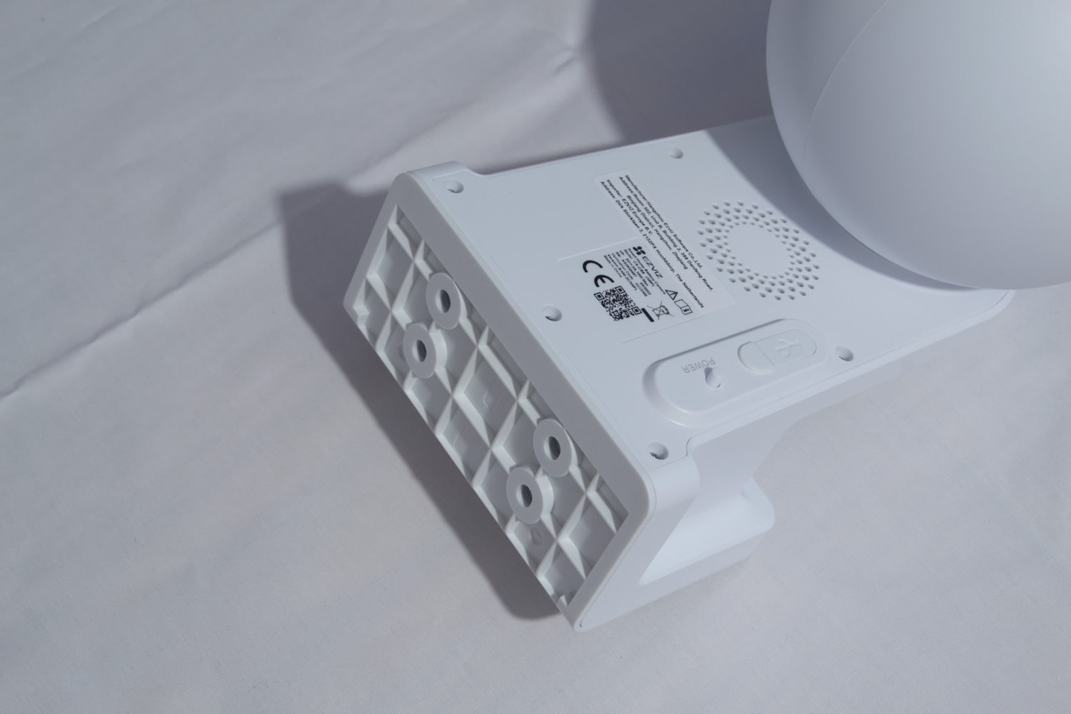 Als Kontrast zum runden Kameragehäuse sind alle Kanten des Kameraarms abgeschrägt. Optisch ist die EZVIZ CB8 also sowohl mit weichen, als auch mit harten Formen gestaltet. Auf uns macht sie einen modernen und unaufdringlich schlichten Eindruck.