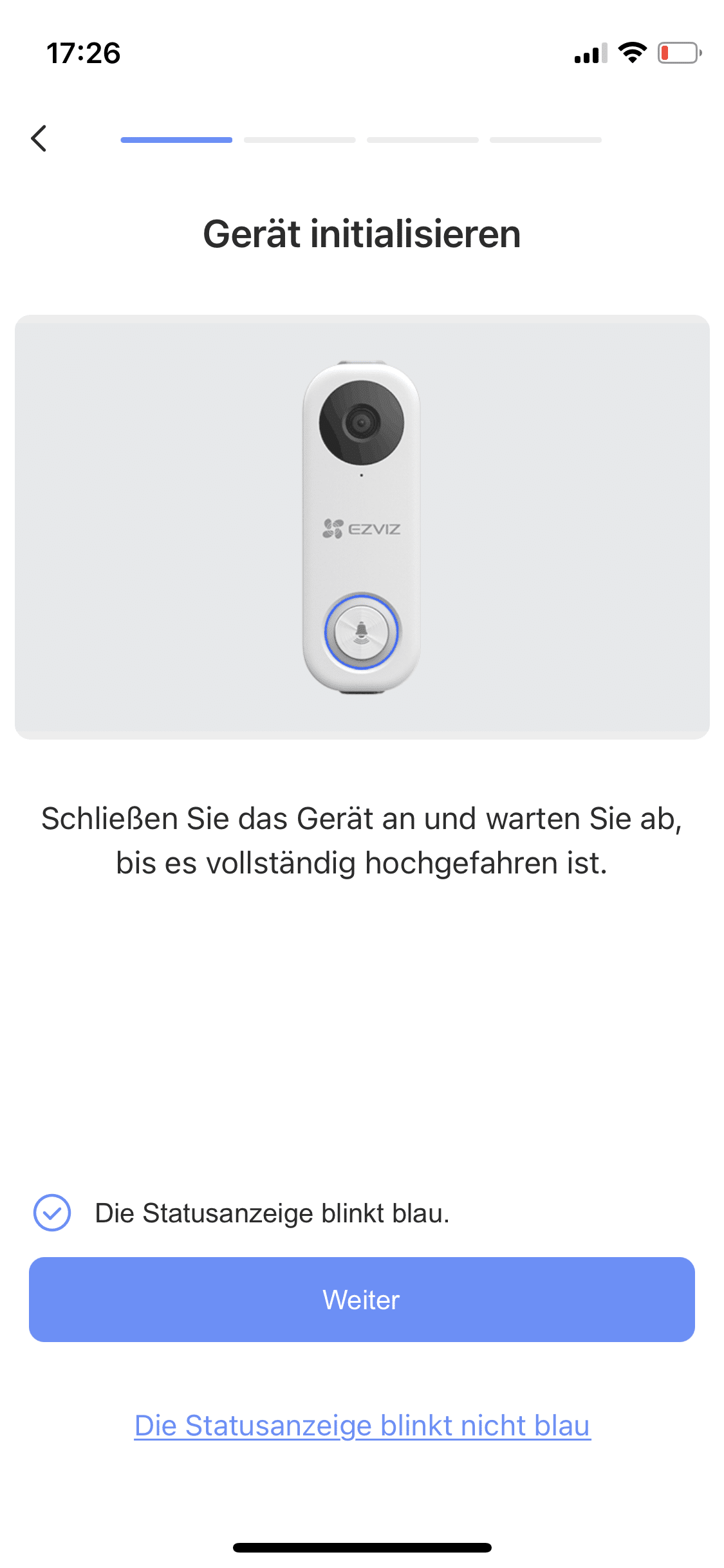 Schließlich wird über das mit zwei Antennen ausgestattete Gadget der Türgong ausgegeben. Damit die smarte Türklingel nicht ohne weiteres gestohlen wird, spendiert EZVIZ dieser eine praktischer Sicherheitsschraube. Ist alles angeschlossen, und mit Strom versorgt, geht es mit der App weiter. Hier wirst du Schritt für Schritt durch den unkomplizierten Einrichtungsprozess geführt. Hier musst du unter anderem den individuellen Barcode deiner smarten Türklingel scannen. Herzstück der Einrichtung ist das Einbinden ist drahtlose Heimnetzwerk. Dabei funkt die EZVIZ DB1C sowohl auf 2,4 GHz als auch 5,0 GHz.