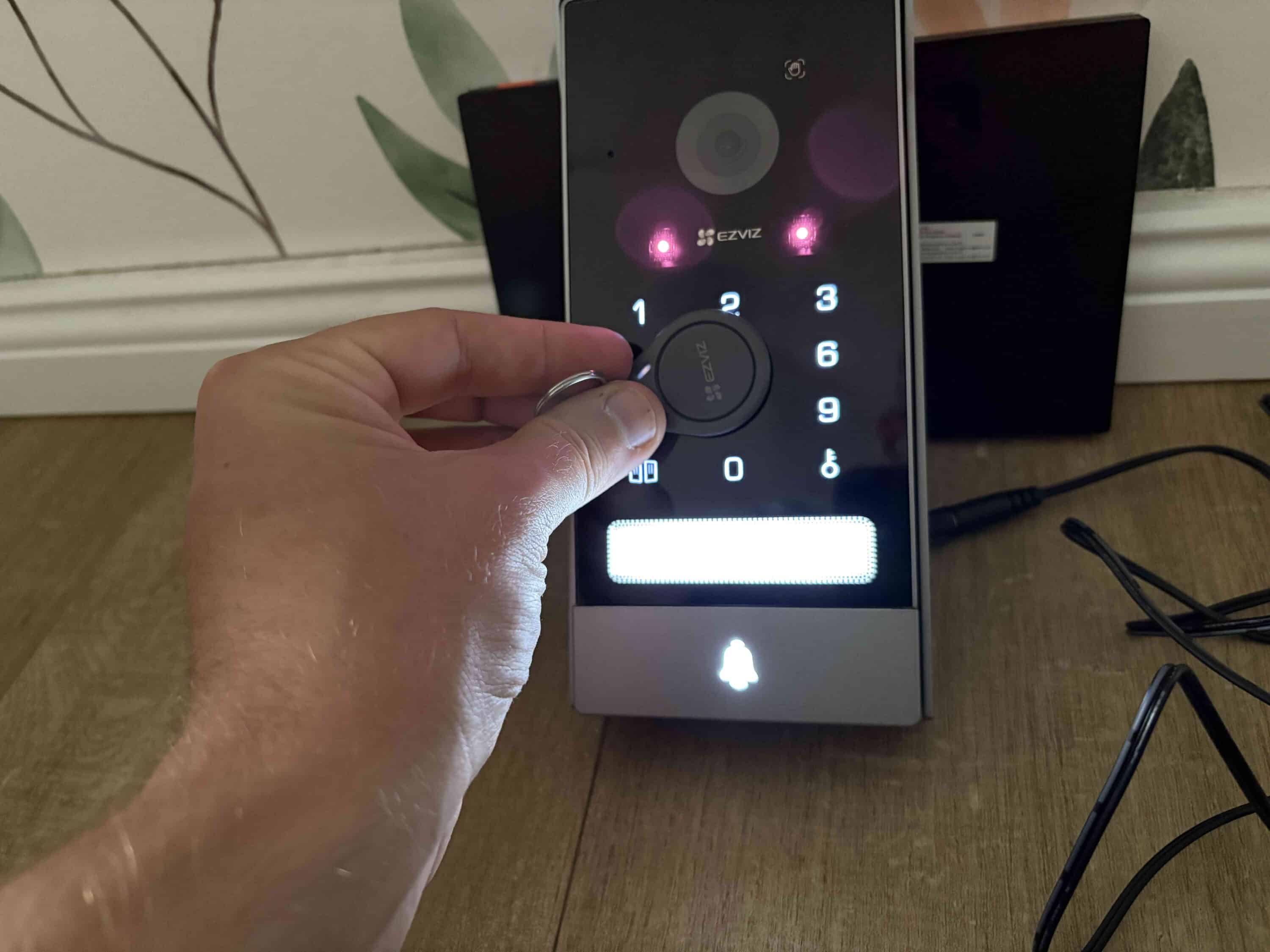 Hier könnt hier durch Ranhalten eines RFID-Chips entsperren. EZVIZ legt dem Lieferumfang gleich drei praktische RFID-Chips im Transponderformat für den Schlüsselbund bei. Abseits davon kommt die Videotürklingel natürlich wieder mit passender Kamera daher. Diese verspricht eine 4K-Auflösung. Eine LED gibt es indes wieder nicht.