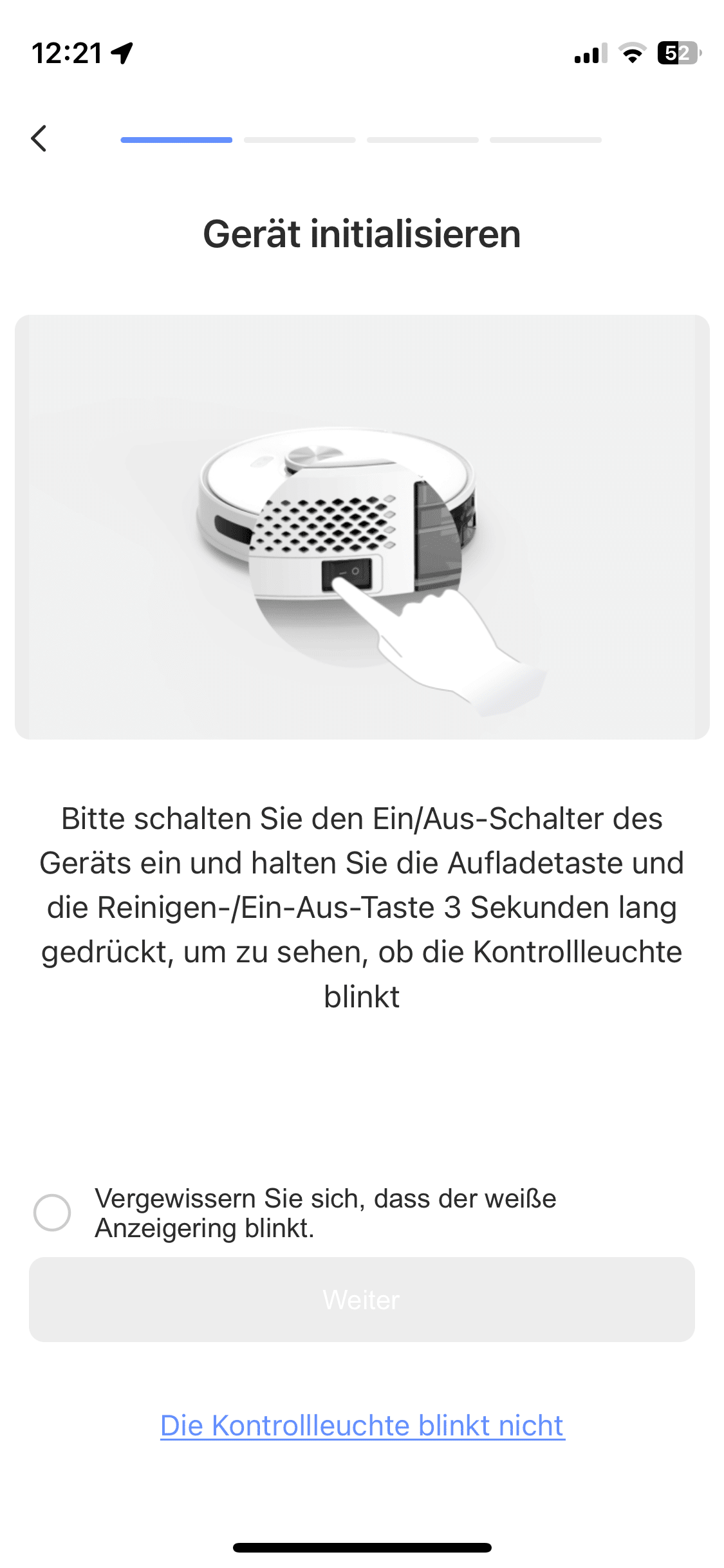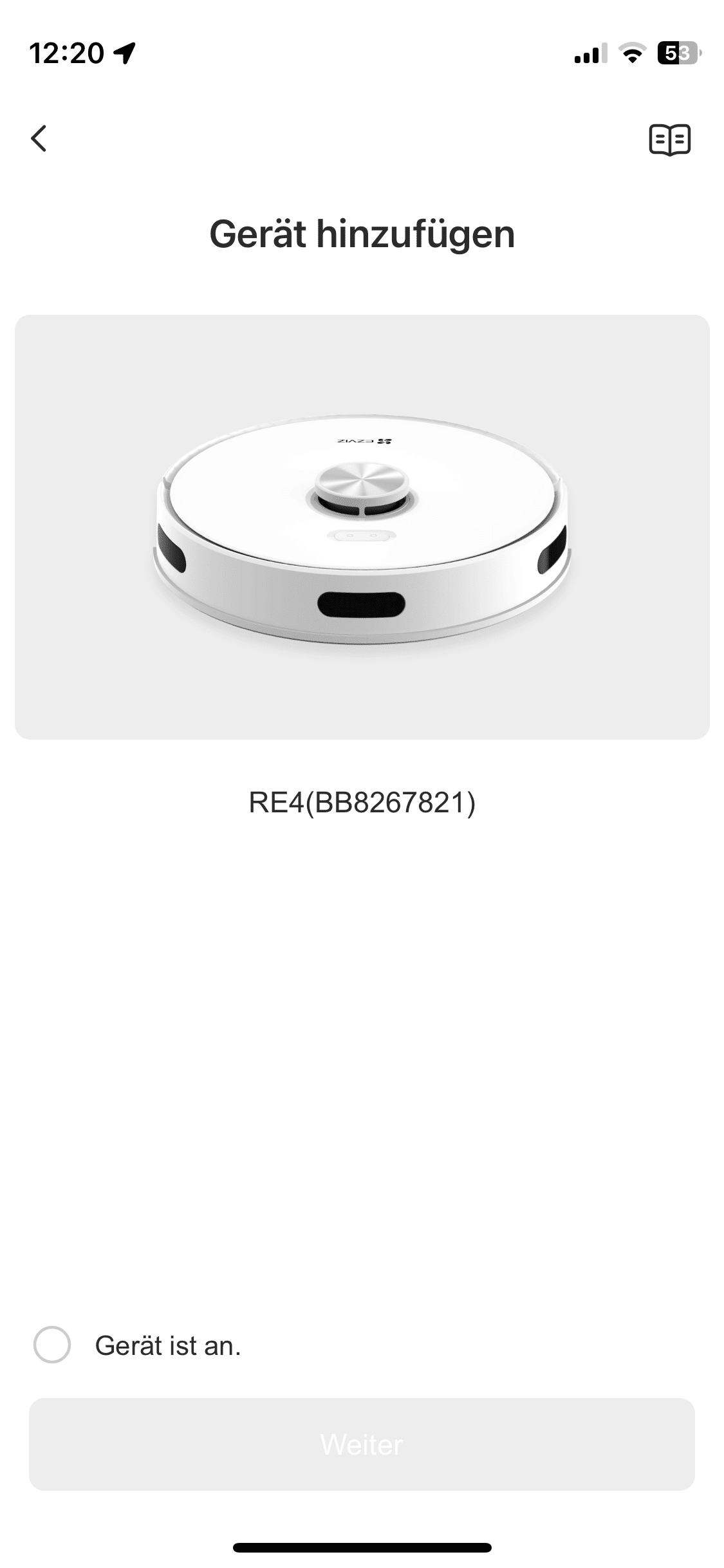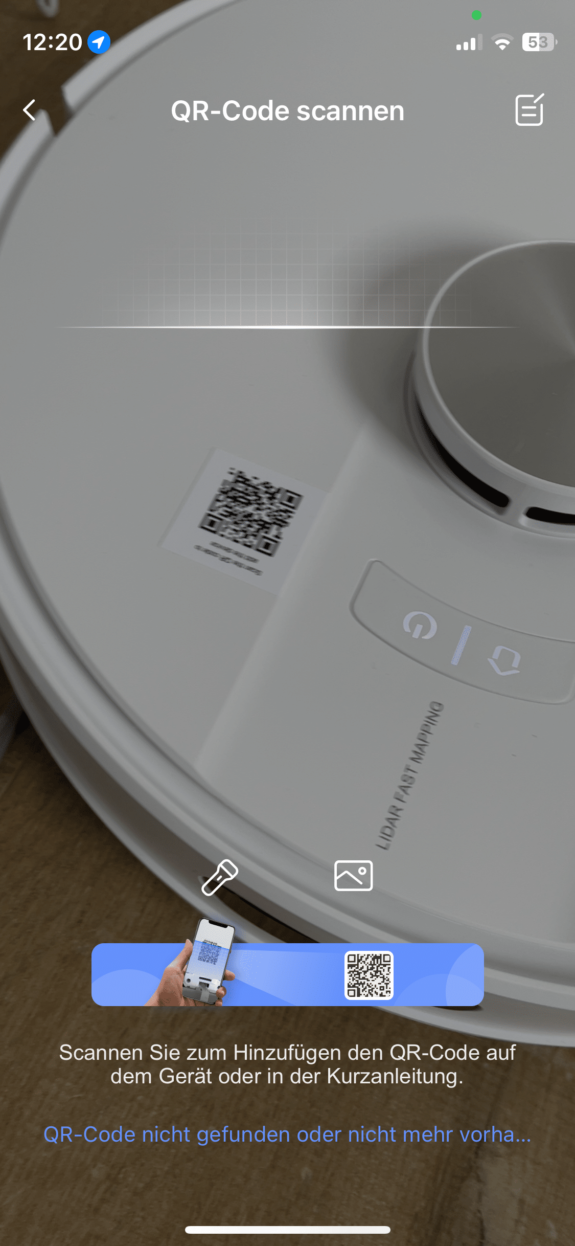 Für die Inbetriebnahme steckst du zunächst einmal die Ladestation in die Steckdose und platzierst den Saugroboter in selbiger. Anschließend schaltest du den Haushaltshelfer mittels Kippschalter ein. Nun zückst du dein Smartphone und lädst die EZVIZ App herunter. Hier wird der RE4 als neues Gerät hinzugefügt. Dabei scannst du einfach den am Gerät befindlichen QR-Code.