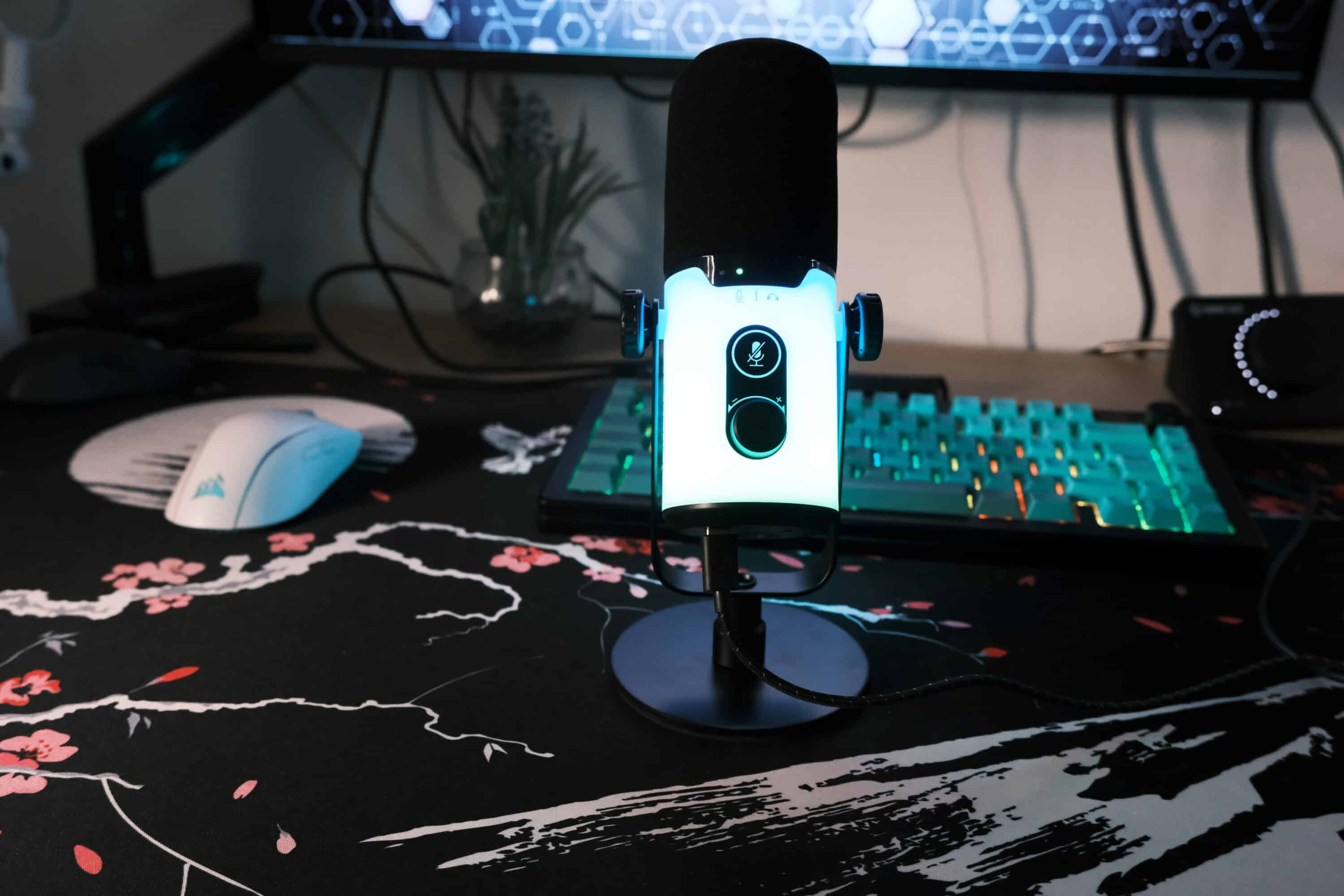 Gu00fcnstiges Mikrofon mit USB-C- und XLR-Anschluss sowie anpassbarer RGB-Beleuchtung. Klanglich in Ordnung, aber leider viel zu leise, um es ohne Zubehu00f6r tadellos nutzen zu ku00f6nnen.