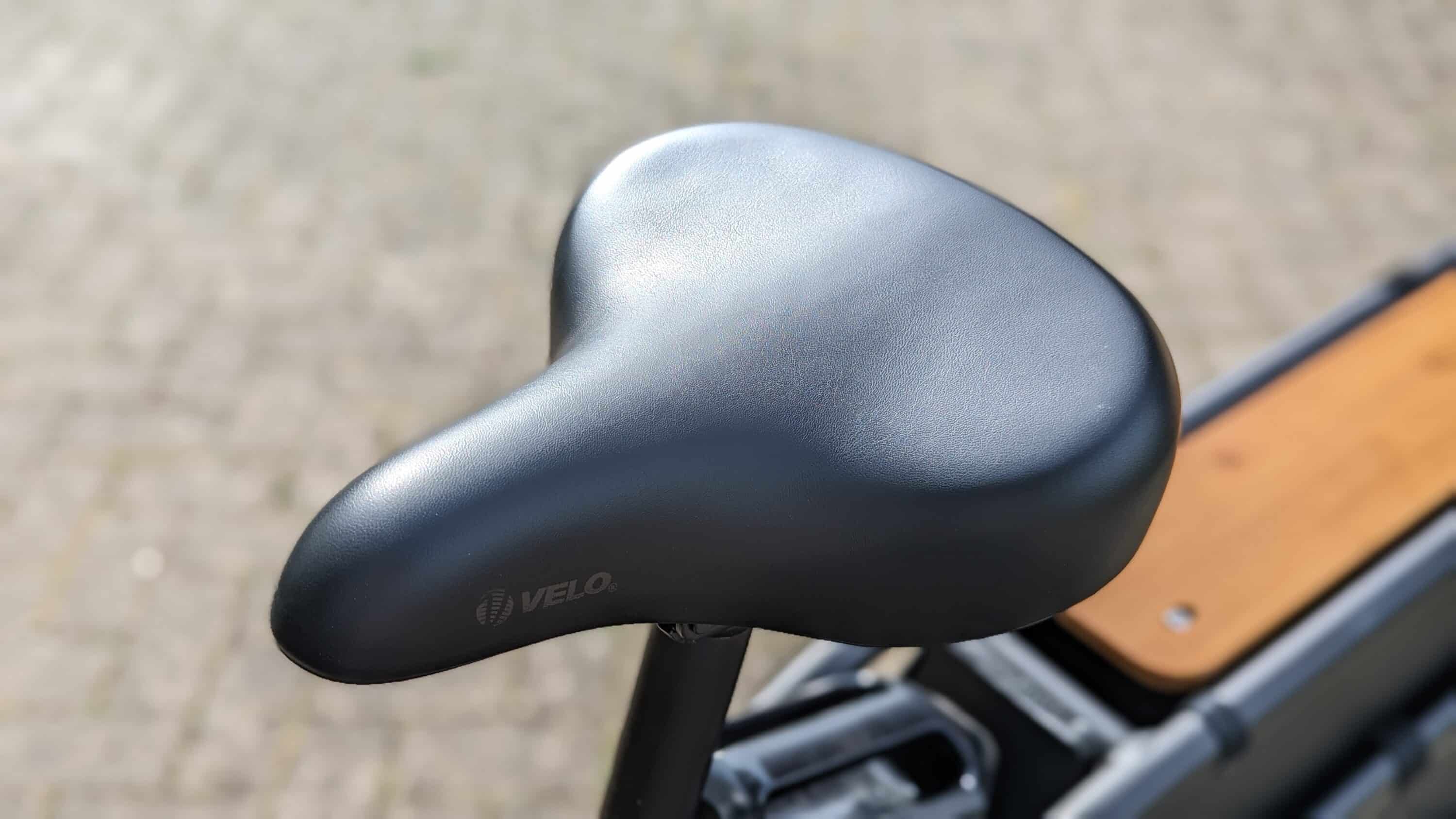 So ist beispielsweise die Vorderachse gefedert, sodass die Dämpfer mit einem Federweg von 60 mm Unebenheiten wie Schlaglöcher oder Kopfsteinpflaster gekonnt ausgleicht. Äußerst bequem fällt zudem der ergonomische Velo-Sattel aus, auf dem es sich auch bei längeren Strecken gut sitzt.