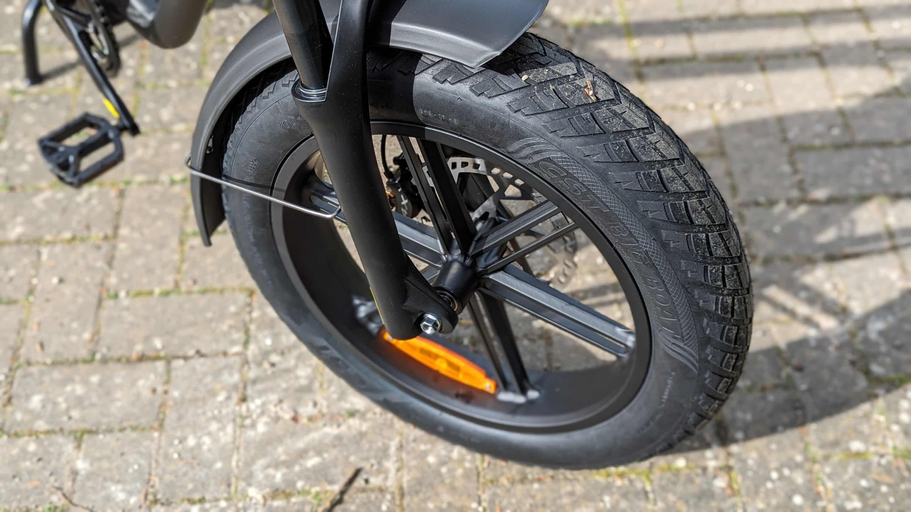 Die wuchtigen vier Zoll breiten CST BIG BOA-Reifen unterstützen das angenehme Fahrgefühl zumindest im Stadt- und Straßenverkehr, eignen sich mit dem eher dünnen Profil aber kaum für Feld- und Waldwege, da es ihnen dort einfach an Grip fehlt.