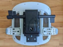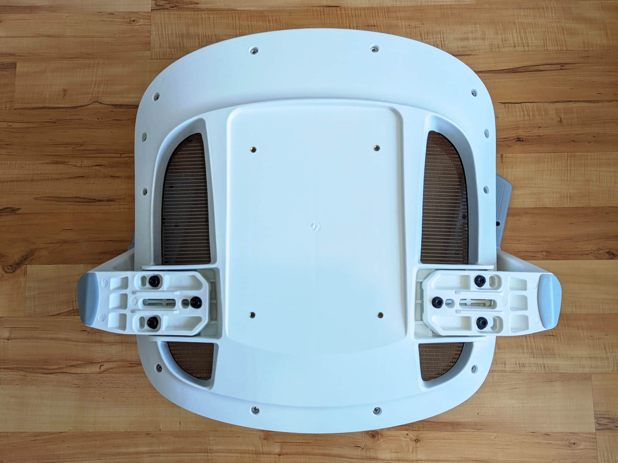 - Die Rückenlehne wird von unten an der Wippmechanik befestigt.