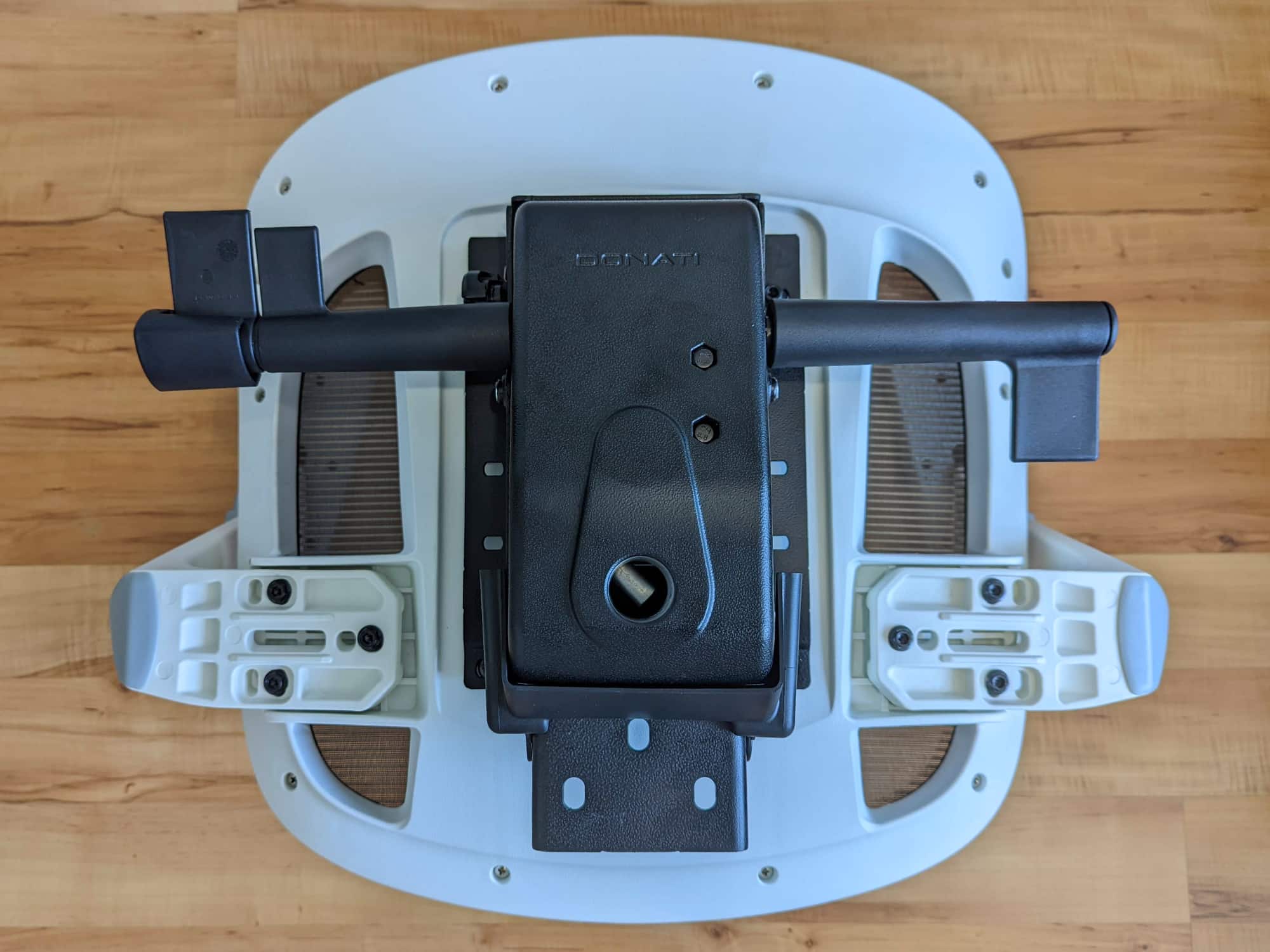 - Die Wippmechanik wird unterhalb der Sitzfläche verschraubt.