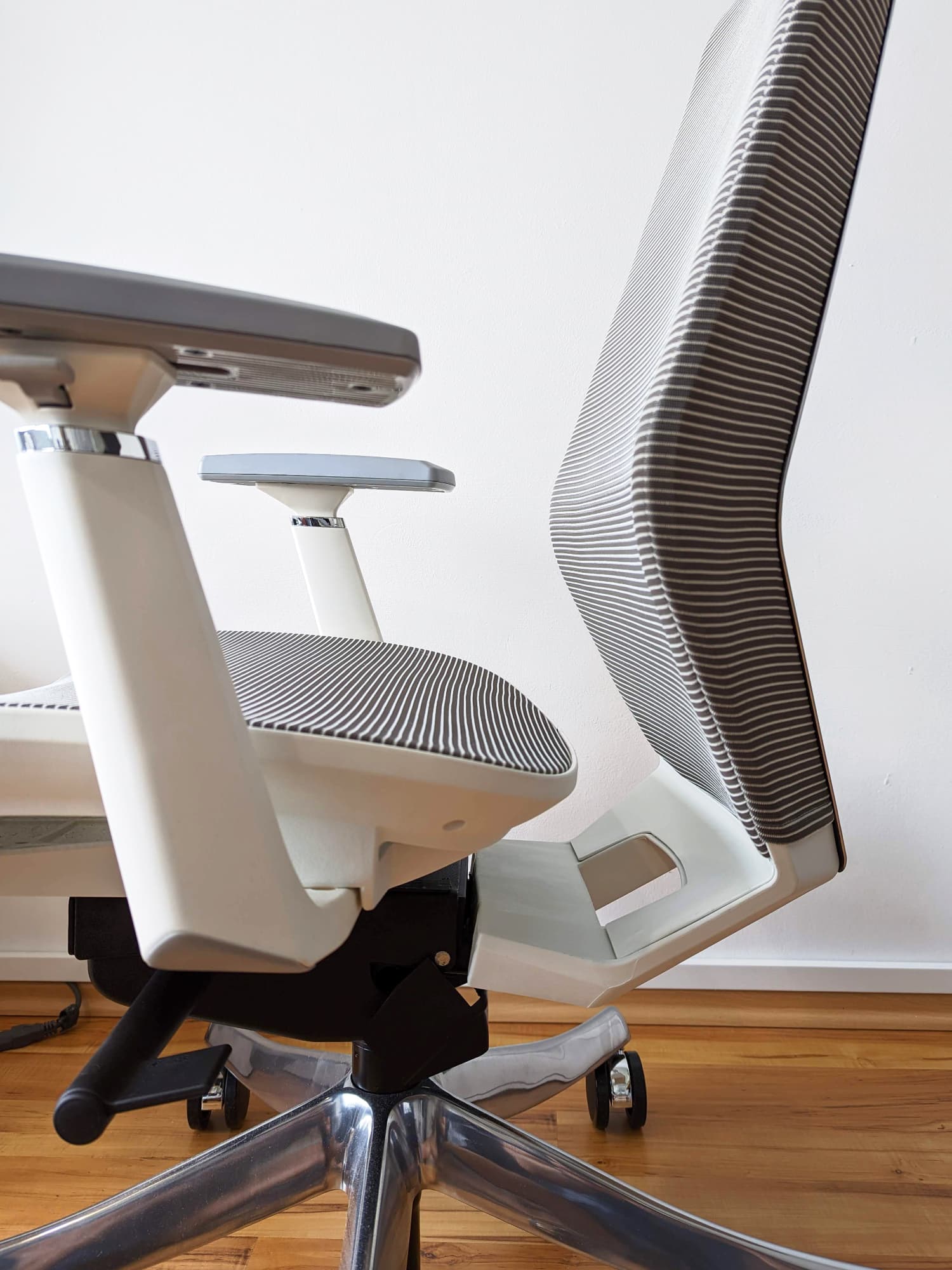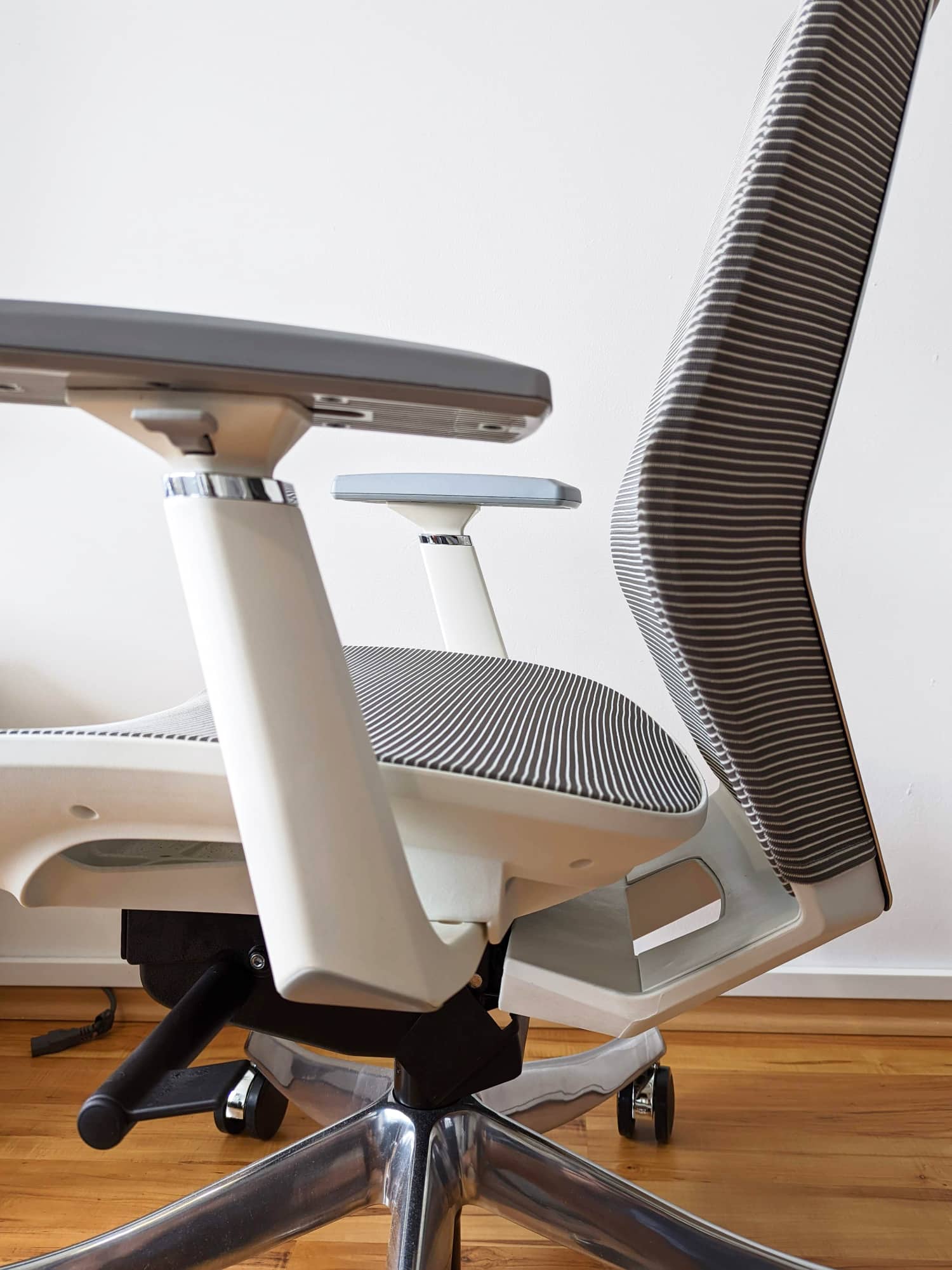 Unserer Meinung nach ist der BS11 Pro optisch sehr gut gelungen. Der Bürostuhl bietet ein ansprechendes modernes Design und passt damit gut ins Büro, aber auch in nicht extra abgetrennte Arbeitsbereiche. Auch, dass man auf Auffälligkeiten wie z.B. größere Herstellerlogos verzichtet, gefällt uns. Einzig der weiße Kunststoff könnte etwas dunkler sein bzw. mehr ins grau gehen, da hier bereits leichte Verschmutzungen oder auch Staub auffallen.