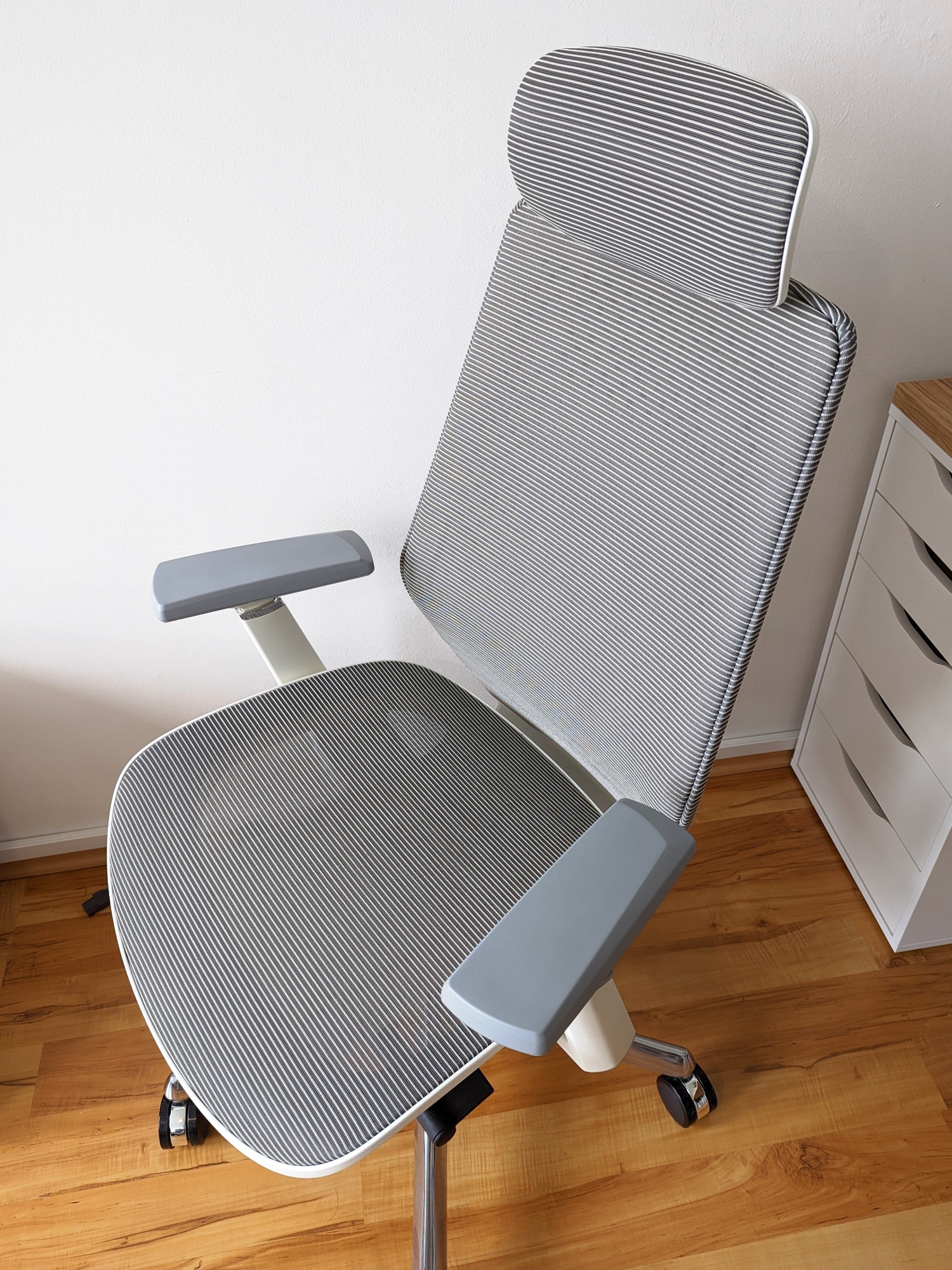 Ebenso wissen Material- und Verarbeitungsqualität zu gefallen. Der Stuhl macht in jeder Position einen sehr stabilen Eindruck, der Netzstoff fühlt sich angenehm an und die Nähte sind sauber. Dies gilt ebenso für den Kunststoff, welcher sich hochwertig anfühlt und keine Mängel aufweist.