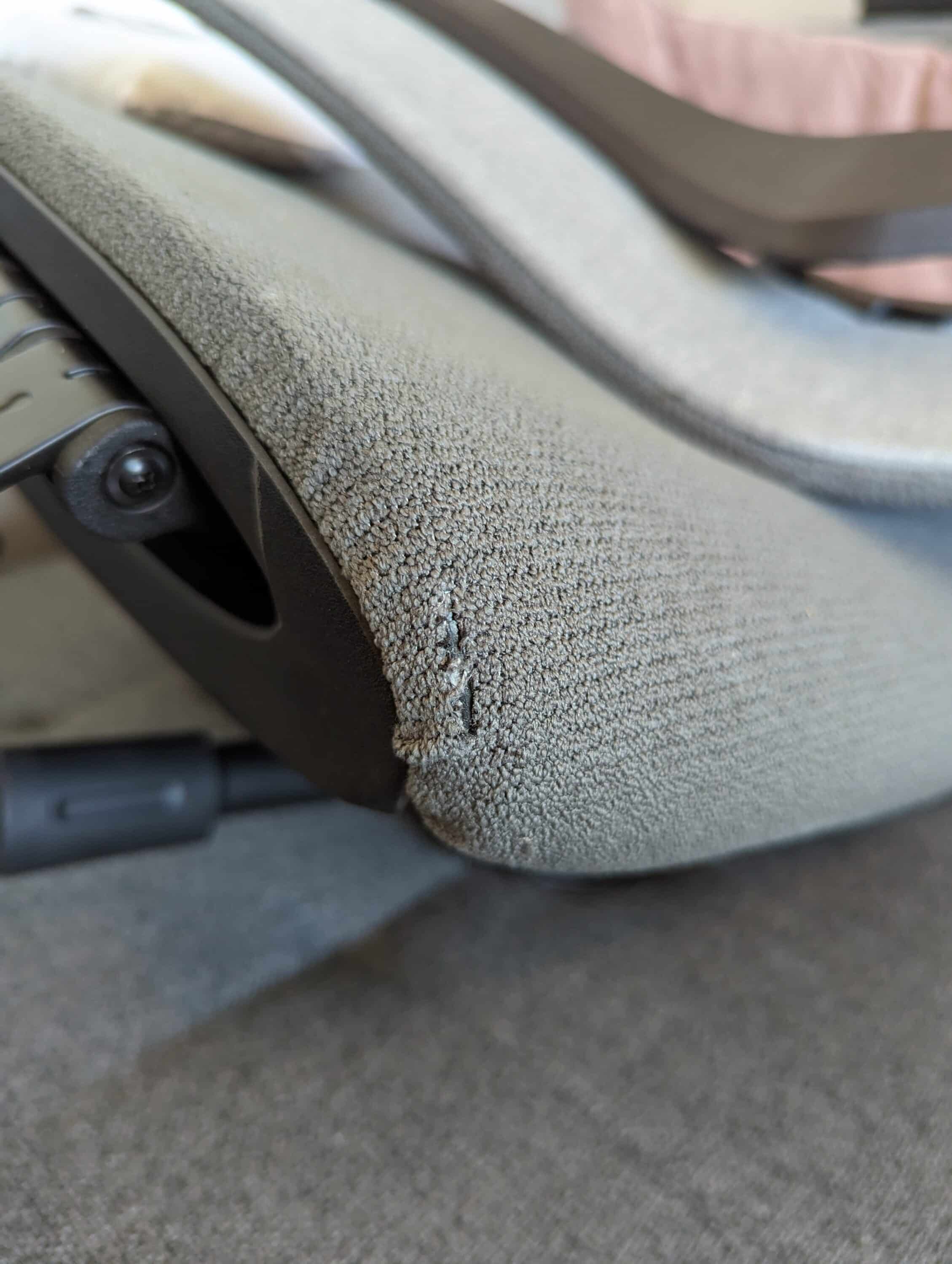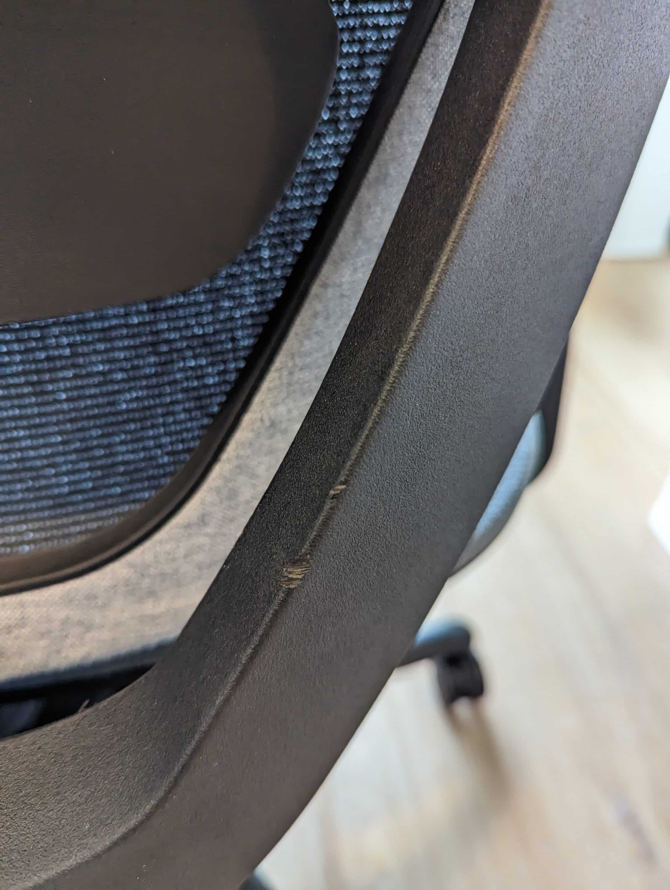 Das erste Modell des BS12 Pro, das ich erhalten habe, wies einige optische Mängel auf. Unter anderem besaß der Stoffbezug an einigen Stellen an der Rückenlehne Löcher und war an den Nähten des Sitzes nicht sauber verarbeitet. Außerdem waren am Gerüst der Rückenlehne einige Einkerbungen im Kunststoff zu finden.