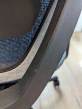 Die Verarbeitung des zweiten Modells des Flexispot BS12 Pro war insgesamt in Ordnung, konnte mich jedoch auch nicht komplett überzeugen. Der Wintex-Mesh-Bezug fühlt sich für mich generell nicht sehr hochwertig an. Fährt man mit den Händen über den Stoff, dann spürt man gelegentlich nur das Kunststoffgitter darunter. Der Stoff wirkt auf mich eher faserig und irgendwie „ausgefranzt“ – vergleichbar mit einem Kleidungsstück, das dazu neigt Fäden zu ziehen. In dieser Hinsicht macht der Bezug auf mich auch den Eindruck, dass er durch kantige oder spitze Objekte leicht beschädigt werden könnte, wodurch Löcher und Fransen wie bei meinem ersten Modell entstehen könnten. Außerdem zeigten sich nach ca. drei Monaten täglicher Nutzung bereits leichte Verfärbungen des Stoffs, vermutlich durch die Reibung mit meiner Kleidung.