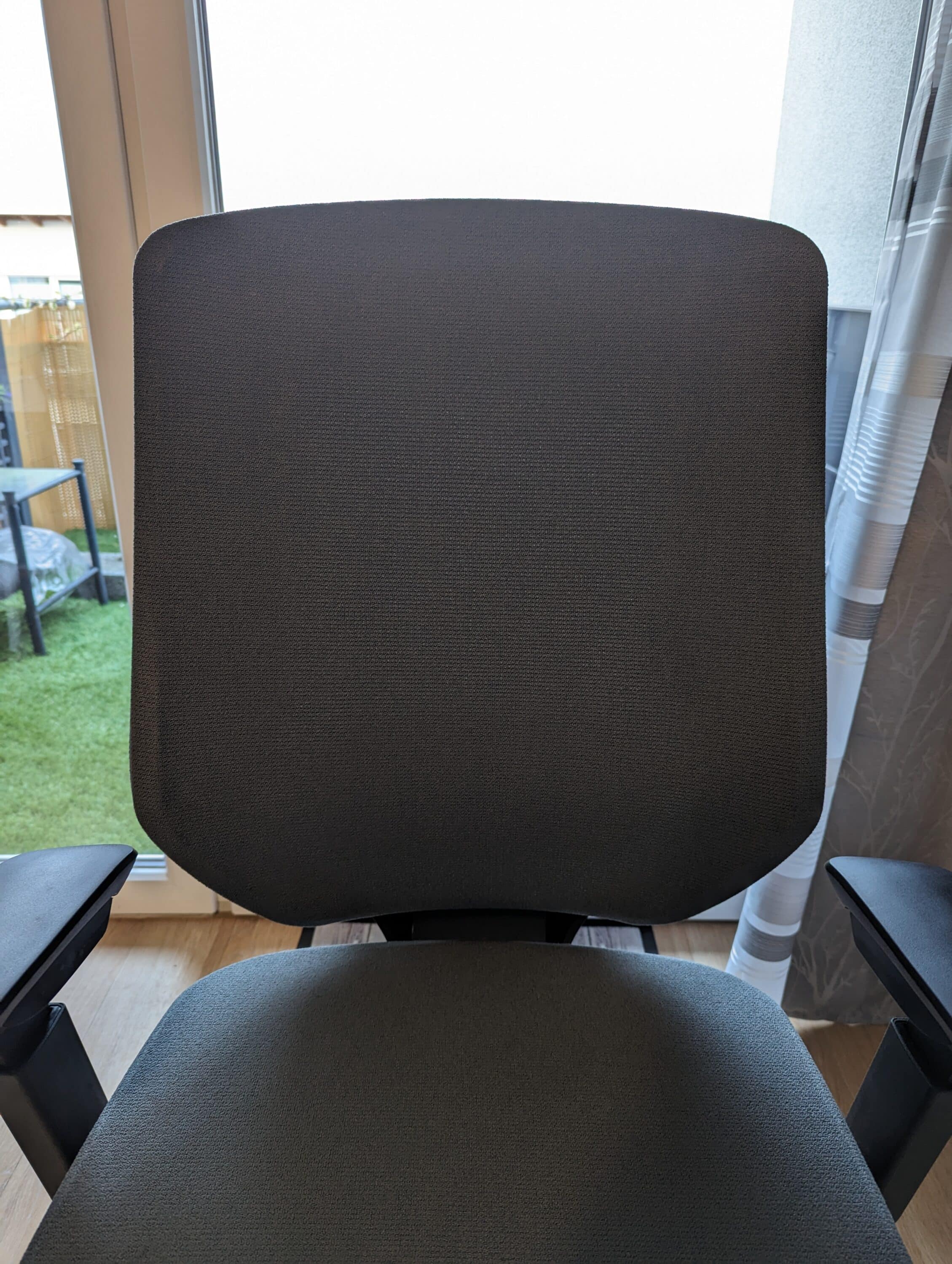 Tatsächlich merkt man davon jedoch nichts, wenn man auf dem Stuhl sitzt. Dann fühlt sich der Bezug angenehm weich und federnd an. Daher ist es möglicherweise auch ein Trade-Off zwischen Atmungsaktivität und Haptik, bei dem die Designer von Flexispot sich für die Atmungsaktivität entschieden haben. Ein weiterer Vorteil des Wintex-Mesh-Bezugs ist, dass er sich relativ leicht reinigen lässt.