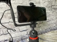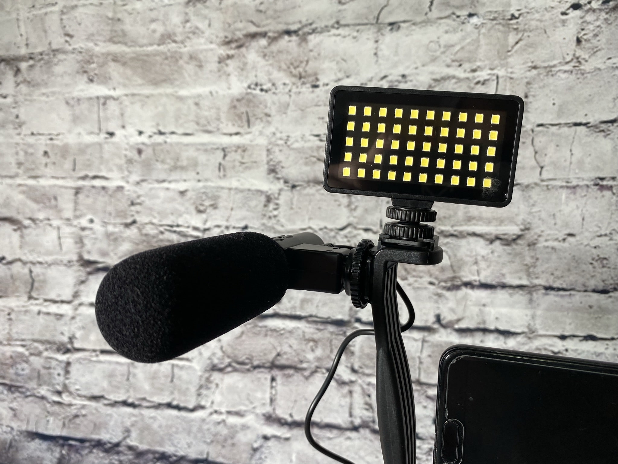 Ohne zu viel vorwegnehmen zu wollen – unsere Erfahrungen waren eher durchwachsen. Warum dies der Fall ist, versuchen wir im Weiteren zu erläutern. Als Erstes etwas Gutes zur Handyhalterung. Die Klemme funktioniert einwandfrei und klemmt das Handy sicher und fest an den Tripod fest. Selbst durch starkes Wackeln fällt das Handy nicht aus seiner Position heraus. Nimmt man das Kit mit in holperige Gegenden, braucht man sich darum keine Gedanken zu machen. Jedoch sollte man dann die Halterung für die LED-Beleuchtung und das Mikrofon demontieren, da diese sich dann gerne im Kreis drehen und sich immer wieder verstellen, obwohl sie fest angezogen worden sind.
