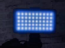 Machen wir also bei den drei mitgelieferten Gadgets weiter. Ein besonderes Lob wollen wir für die kleine mitgelieferte LED-Beleuchtung und deren Plastikkappen zum Dimmen aussprechen. Mit diesem lassen sich gedimmtes, warmes und kaltes Licht simulieren. Das ganze klappt auch ganz einfach und gut – erfüllt damit seine Daseinsberechtigung in allen Maßen. Gleiches gilt auch für den Bluetooth-Auslöser. Die Verbindung, egal ob iOS oder Android, funktioniert flüssig und ohne Probleme. Perfekt um Selfies oder Videos von sich zu machen, ohne direkt das Smartphone zu bedienen.