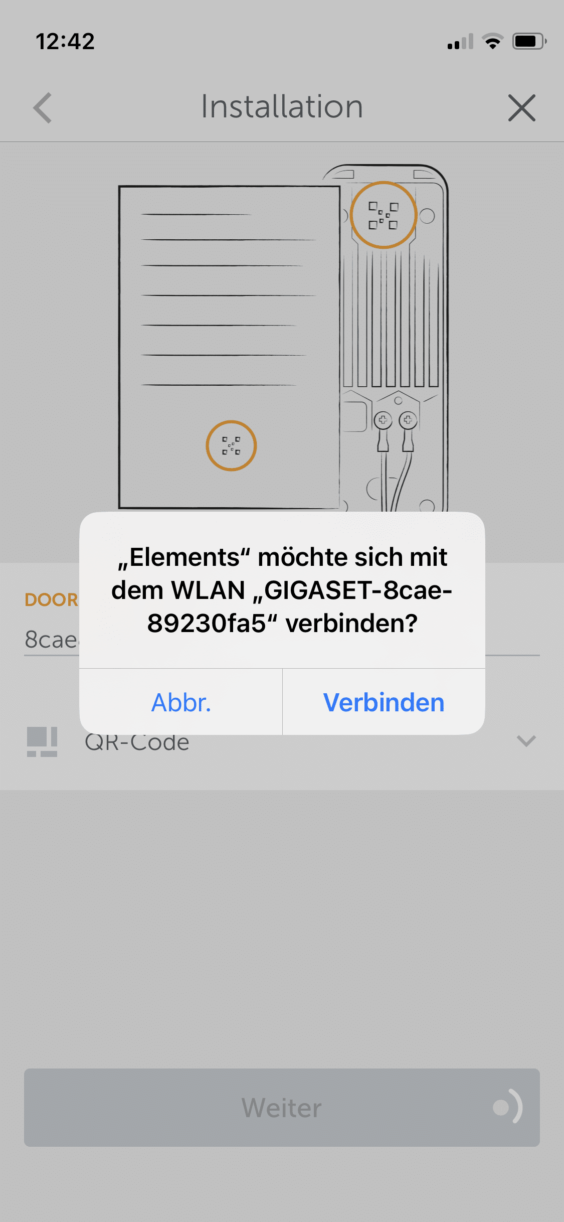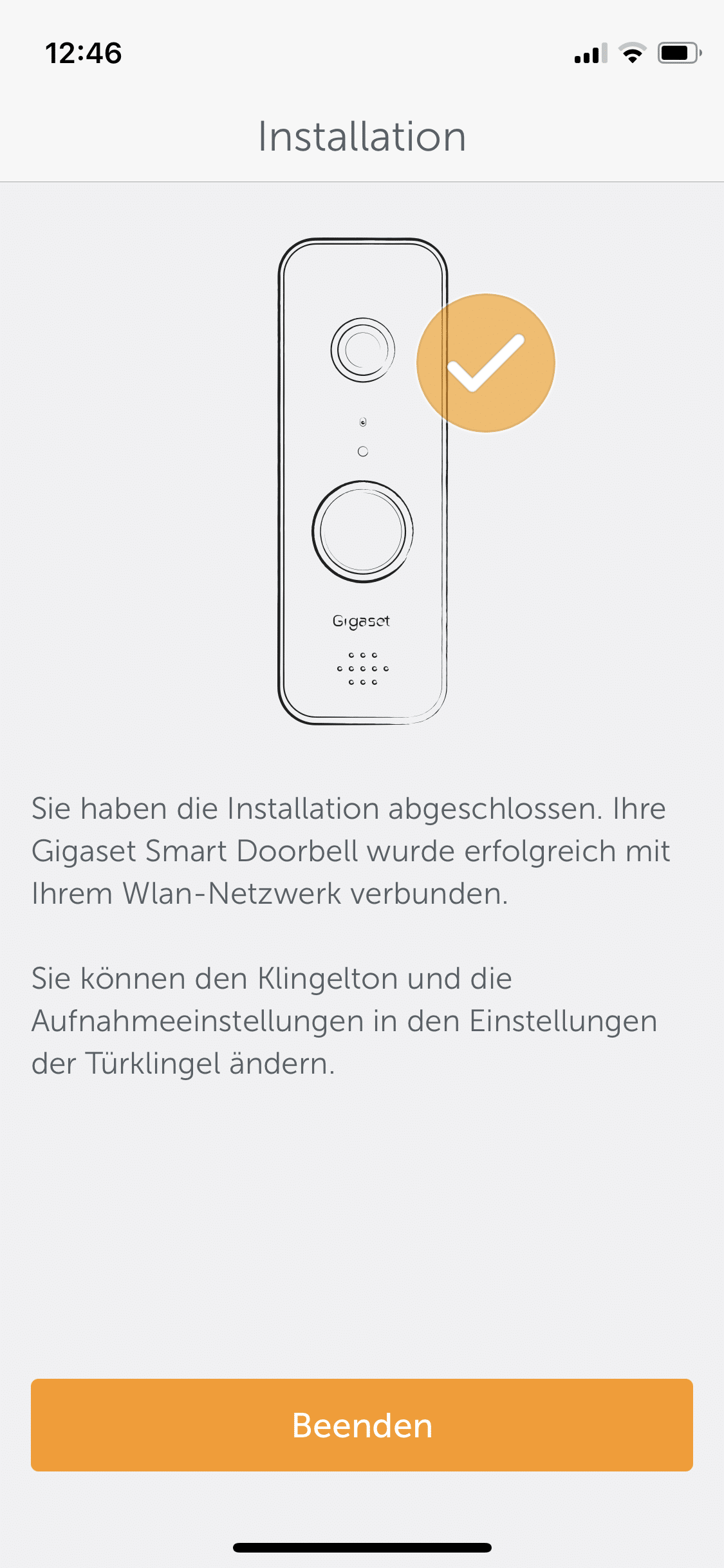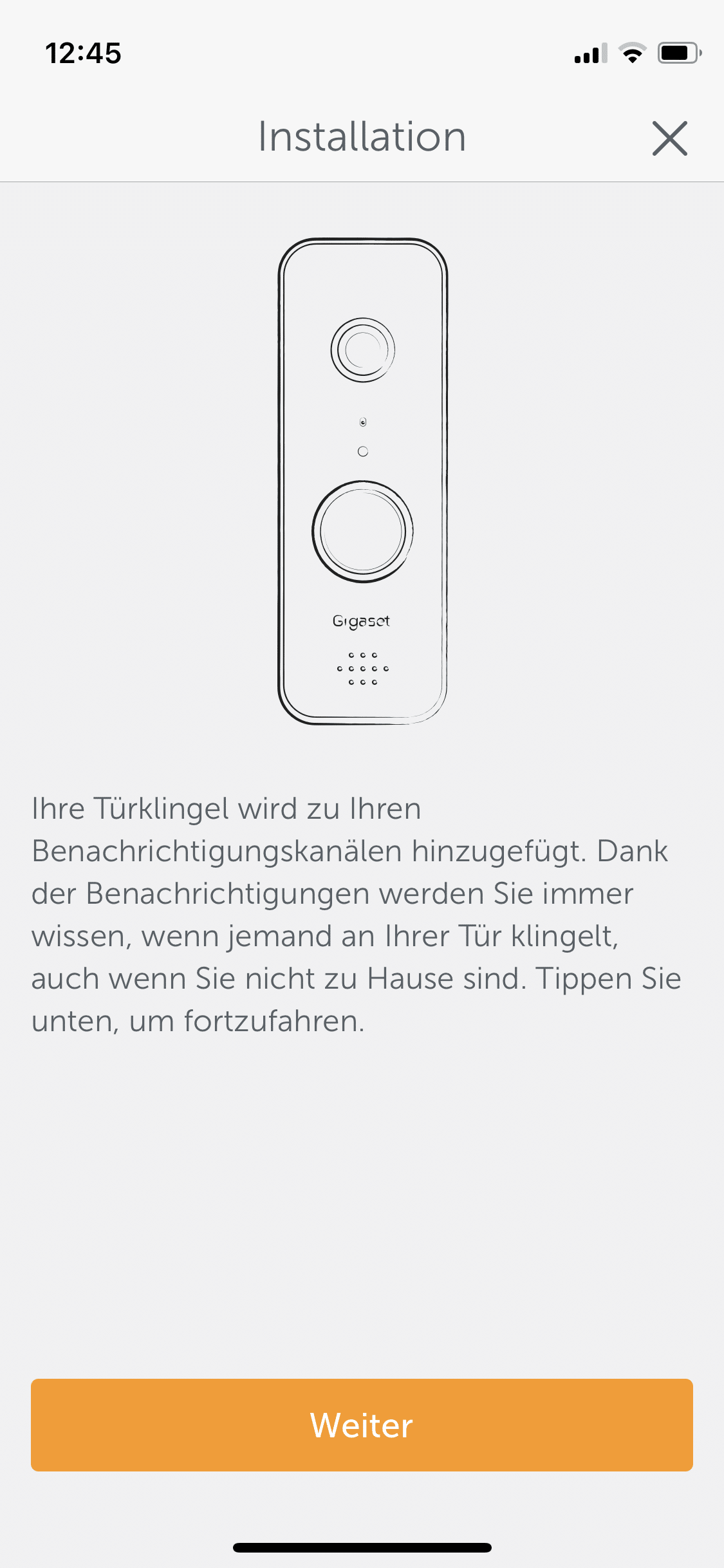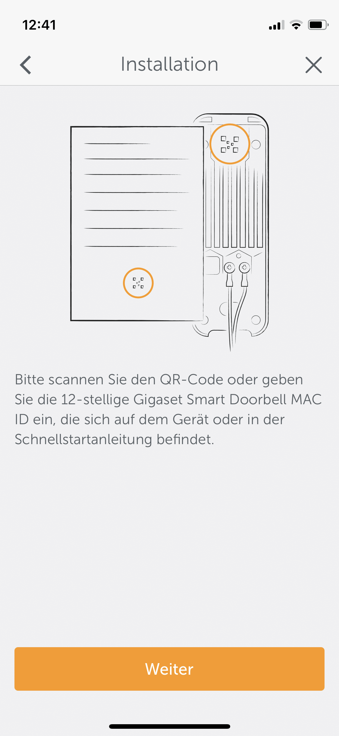 Ob alles geklappt hat, erkennst du daran, dass die Umrandung des Klingelknopfes weiß leuchtet. Ist das der Fall, kannst du dein Werkzeug weglegen und stattdessen dein Smartphone zur Hand nehmen. Für die weitere Einrichtung benötigst du nämlich die hauseigene Gigaset elements App. Einmal die App heruntergeladen fügst du die smarte Türklingel dann einfach als Gadget hinzu. Hierfür benötigst du den QR-Code, der sich auf der Rückseite der Klingel befindet.