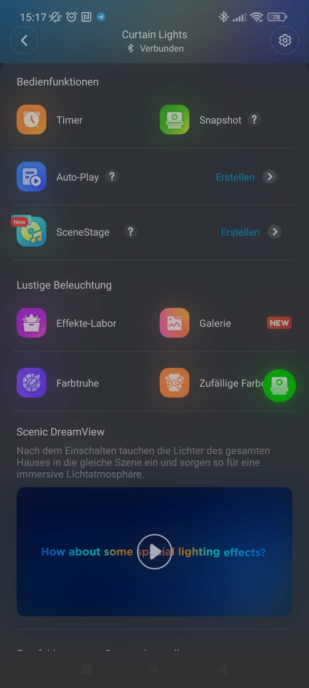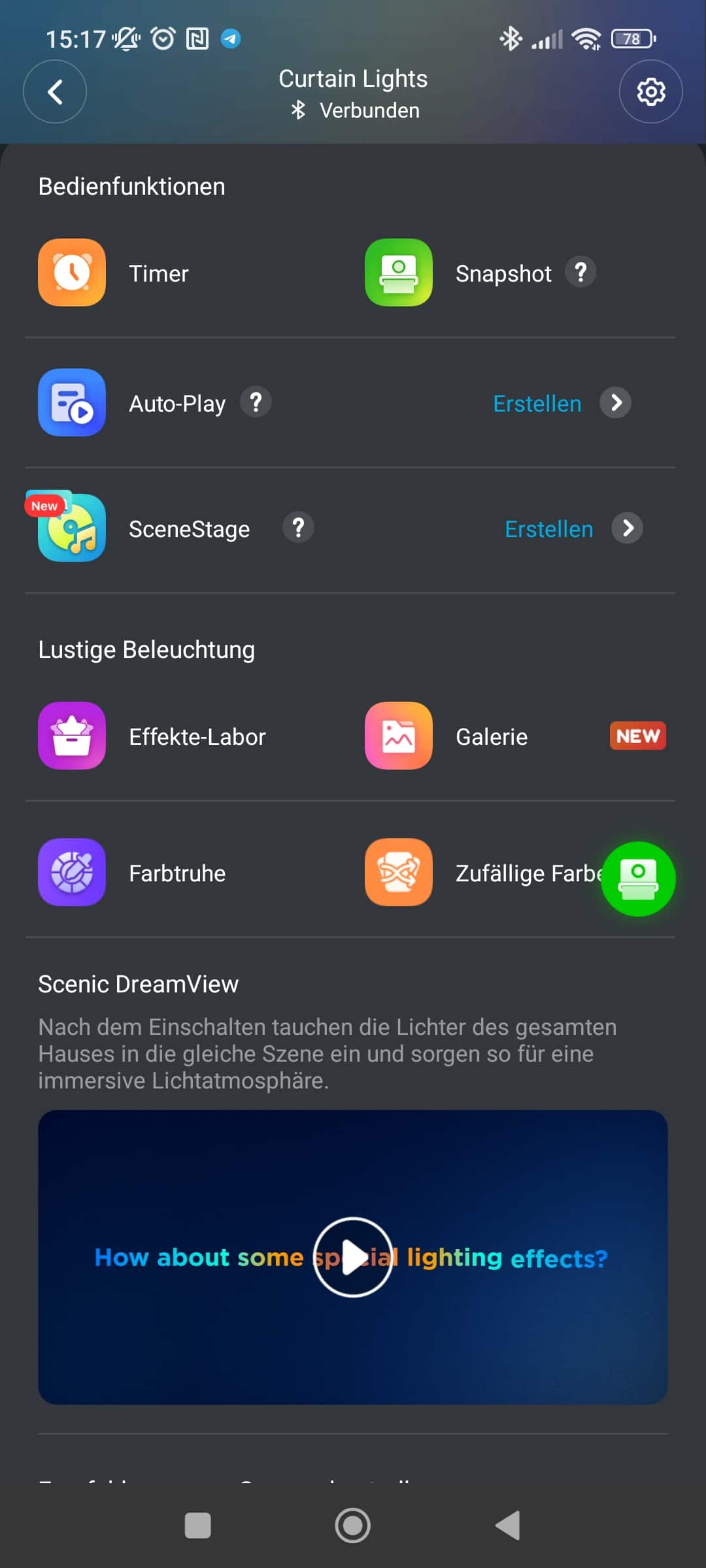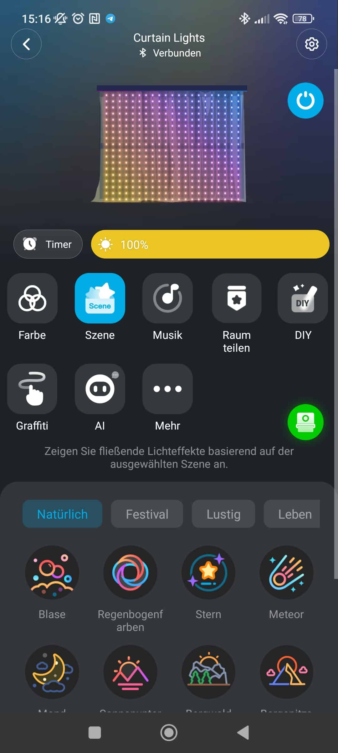 Zur Einrichtung und Nutzung des vollen Funktionsumfang wird die Govee-App benötigt. Auch wird ein Account beim Hersteller vorausgesetzt, hier schon mal ein kleiner Minuspunkt. Mit eingeschaltetem Bluetooth werden die Curtain Lights 2 direkt gefunden und können genutzt werden.