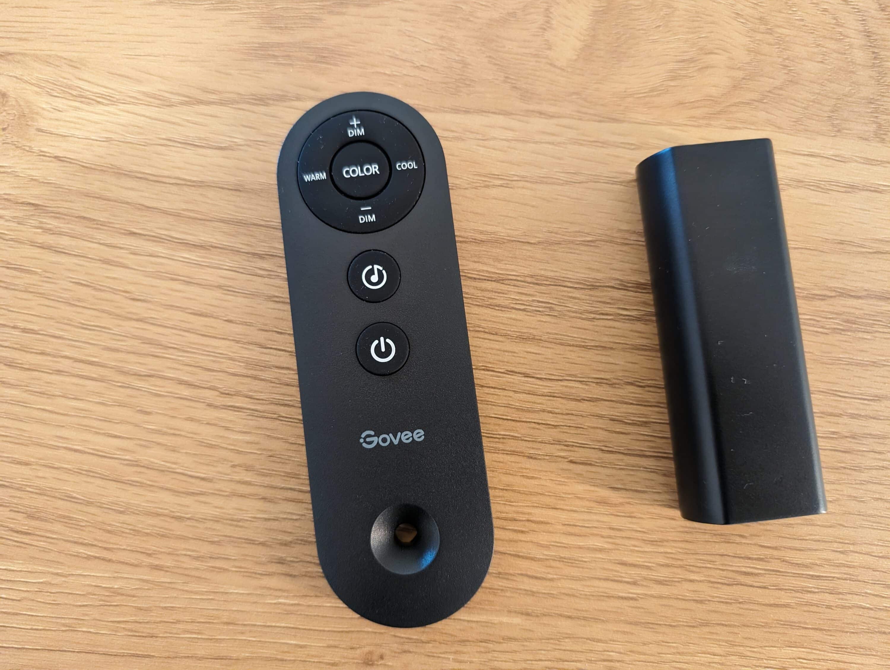 Hinsichtlich der Bedienung gibt sich die Govee Floor Lamp 2 sehr variantenreich. Im Lieferumfang enthalten ist beispielsweise eine handliche Fernbedienung, mit der sich die wichtigsten Funktionen steuern lassen. Hier können wir per Knopfdruck die Leuchte ein- und ausschalten, die Farbe verändern oder das Licht dimmen.