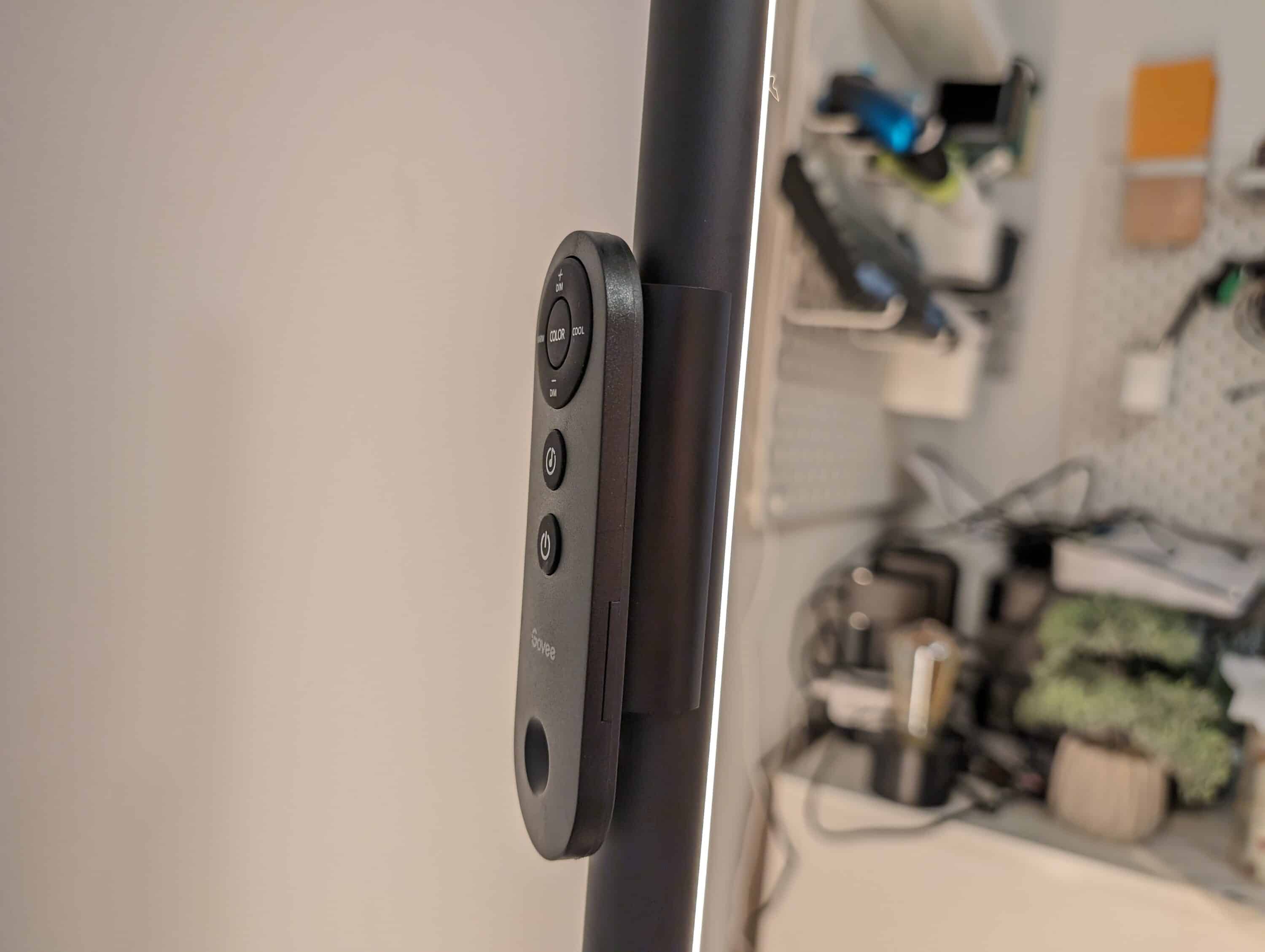 Besonders praktisch ist, dass sich die Fernbedienung magnetisch an der Metallstange befestigen lässt. Eine passende Halterung dafür findet sich ebenfalls im Lieferumfang. Darüber hinaus ist natürlich auch eine Sprachsteuerung möglich. Hierfür können wahlweise der Google Assistant oder Amazon Alexa genutzt werden.