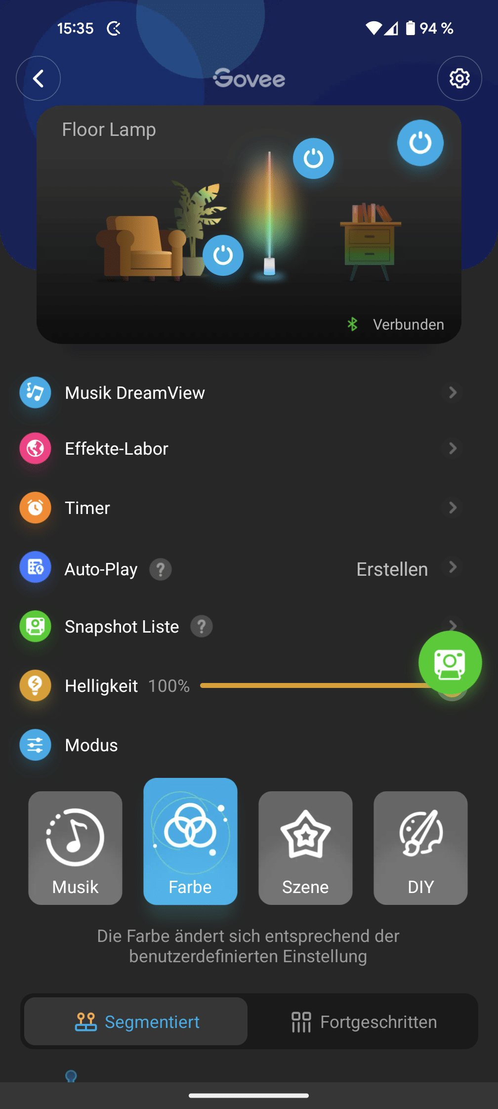 Dreh- und Angelpunkt für die Bedienung ist aber natürlich die Govee Home-App, die als Steuerzentrale für das gesamte Ökosystem des Herstellers fungiert. Hier wird die Govee Floor Lamp 2 schnell und einfach per Wi-Fi und Bluetooth gekoppelt und ist wenige Schritte später einsatzbereit.