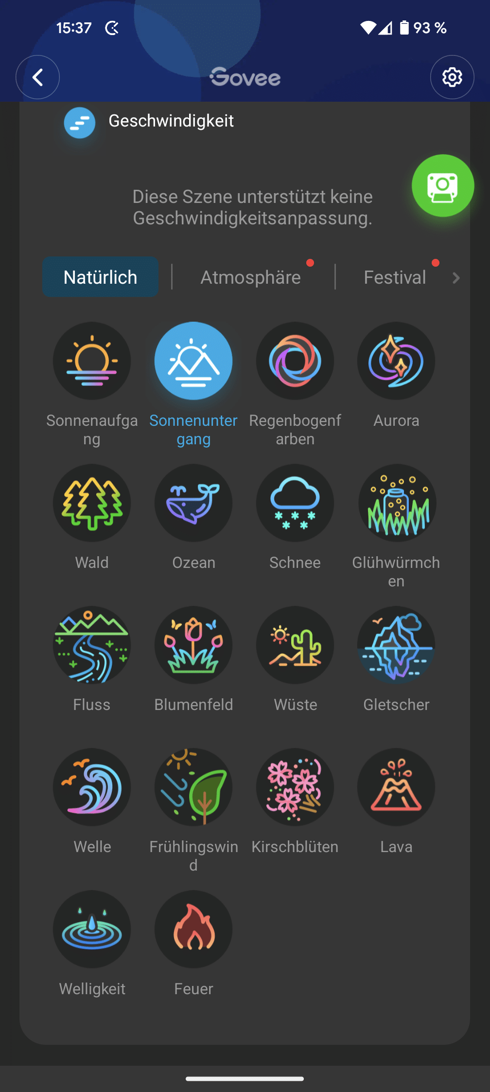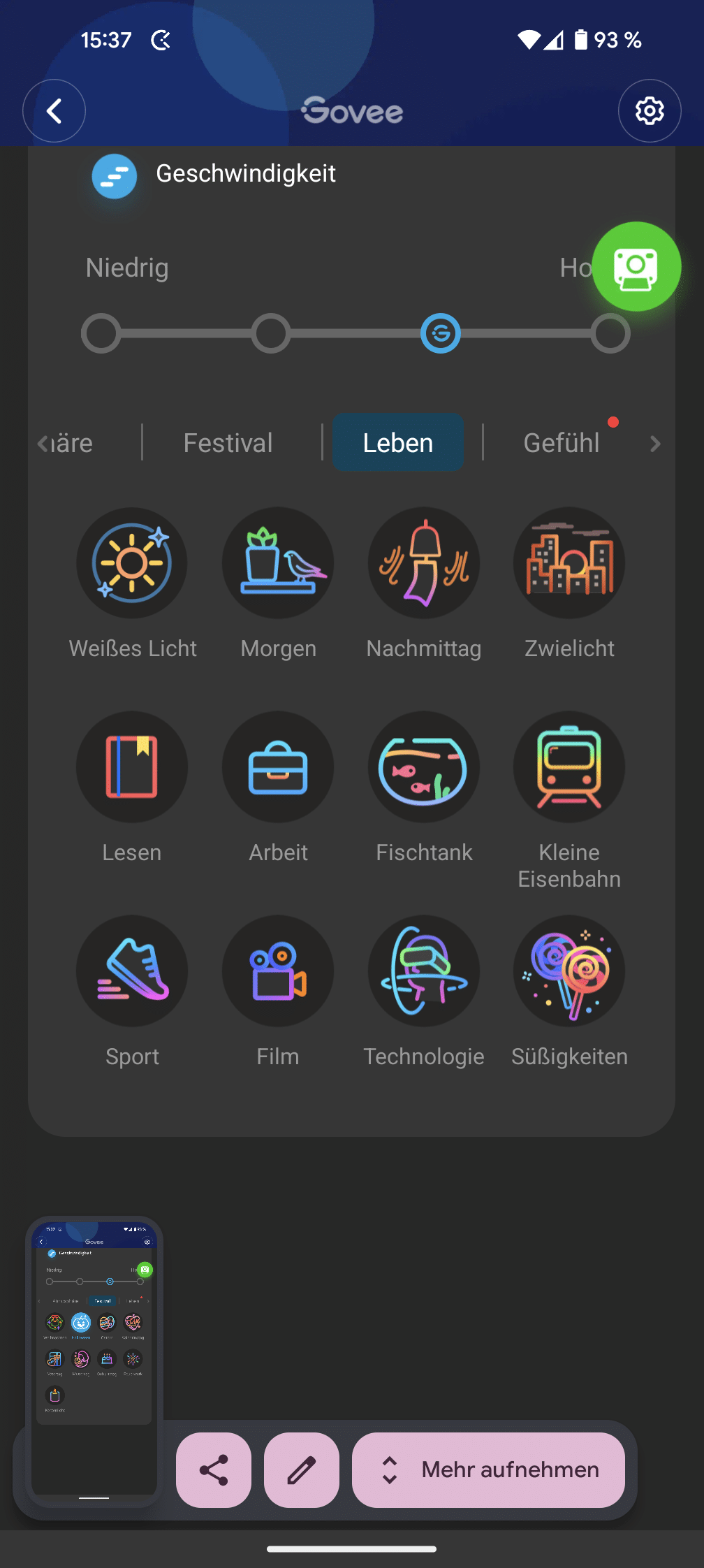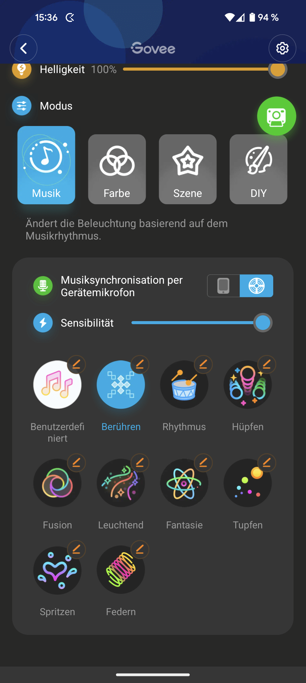 Natürlich lässt sich innerhalb der App auch die Helligkeit anpassen, während wir im Bereich „Modus“ zwischen verschiedenen Beleuchtungsmodi wählen. Diese reichen von Musik über Farbe bis hin zu Szenen und anderen Effekten.