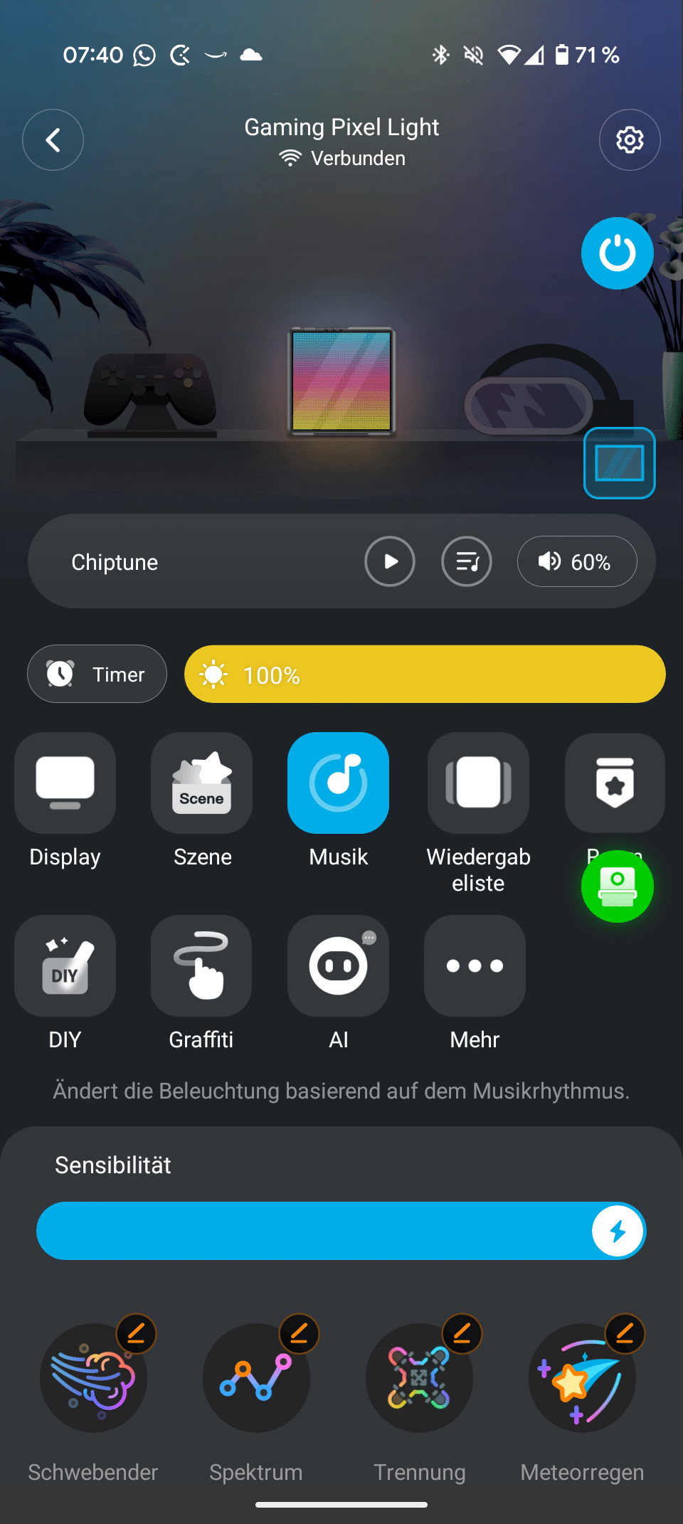 Das zeigt auch klar, wo sich das Govee Gaming Pixel Light heimisch fühlt. Denn für die Nutzung im Familien-Wohnzimmer oder auf dem Küchentisch sind die Effekte dann doch zu speziell. Was übrigens auch für die Musik gilt.