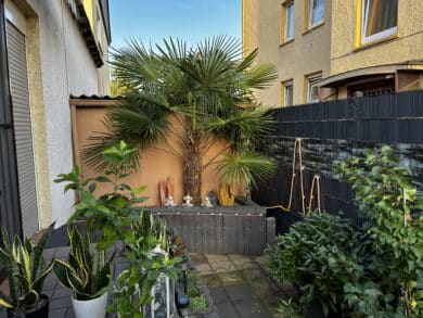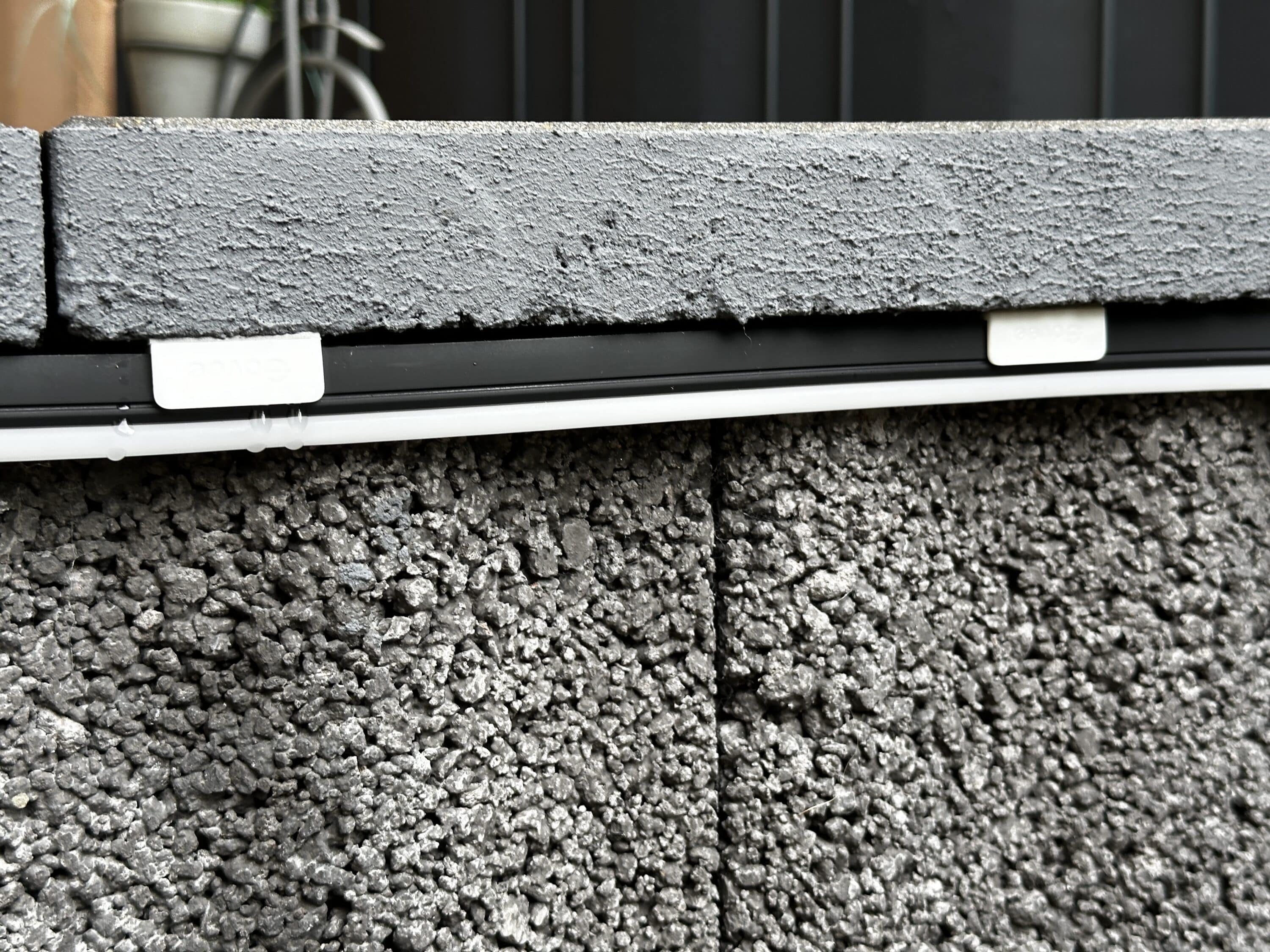 Für die Installation wählte ich den vorgesehenen Ort, meinen Garten. Der Plan war, den LED-Streifen an eine Mauer unter Steinplatten zu kleben und um das Beet herum zu führen, um am Ende den Rest des Streifens am Zaun in einem Muster, in diesem Fall zwei Zacken, enden zu lassen. Es ist schwer, das in Worte zu fassen, also schaut euch die folgenden Bilder an: