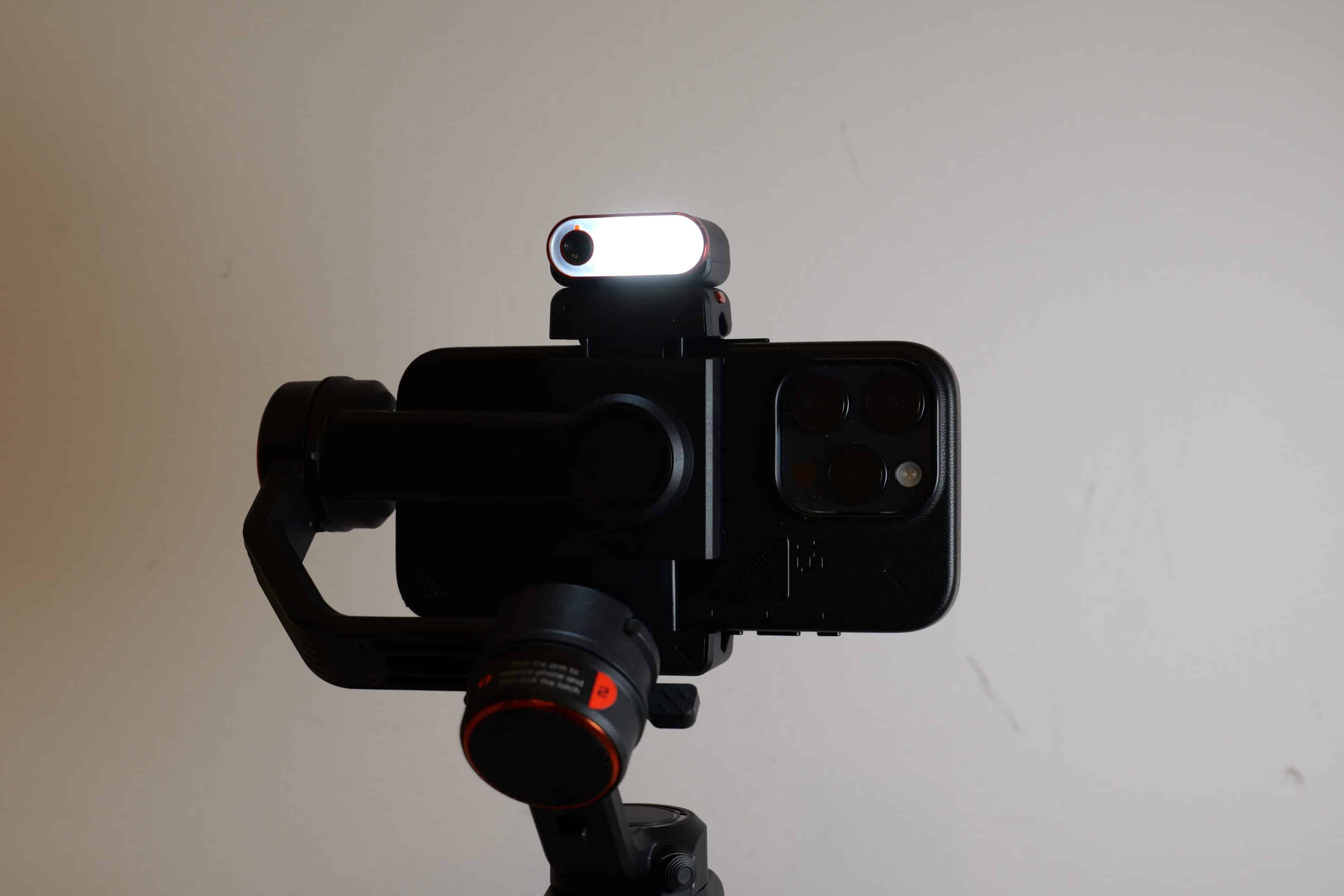 Die Stange des Gimbals ist ebenfalls wie ein Selfie Stick ausfahrbar, insgesamt kommt ihr hier auf eine Reichweite von bis zu 20 Zentimetern, was äußerst praktisch ist. Ebenfalls bereits vom iSteady V3 bekannt ist das Aufhelllicht an der Oberseite, das ganz einfach abgenommen werden kann.