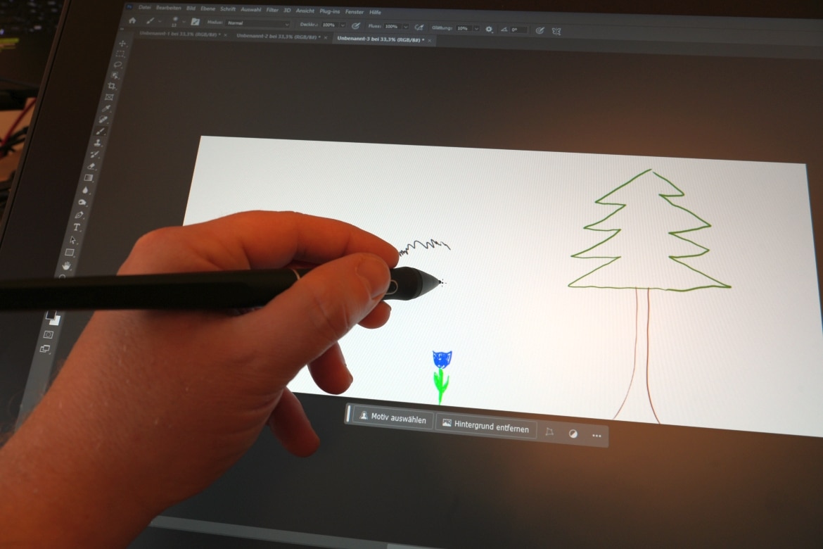 Doch genug der Kritik. Das Arbeiten mit dem Huion Kamvas 22 klappt hervorragend. Stift und Display werden sofort zuverlässig erkannt und nach dem Installieren der Treiber und Begleit-Software kannst du sofort loslegen und Spaß haben.