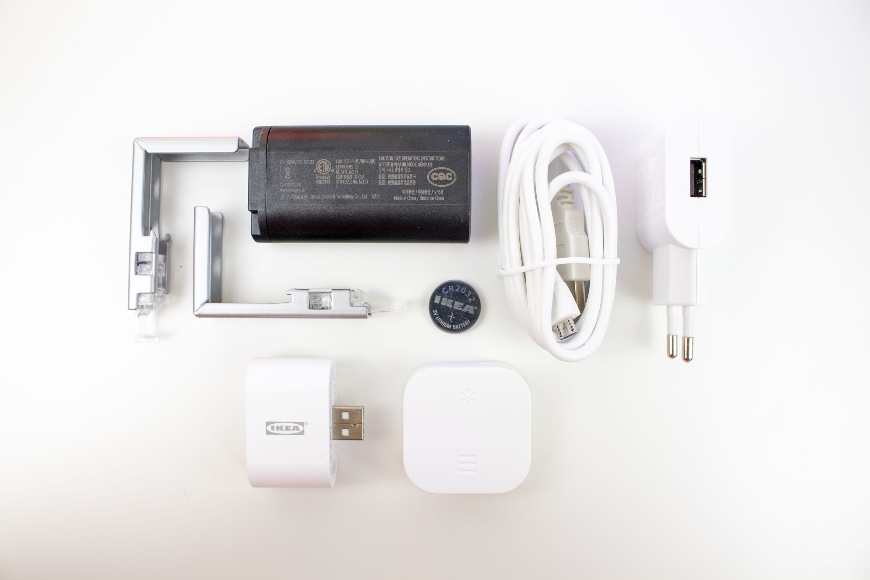 Beim Auspacken unseres ersten Pakets kam das aufgerollte Rollo sowie die Aufhängungen, ein Ladekabel, ein Ladestecker, ein aufladbarer Akku, eine Fernbedienung, ein Signalverstärker sowie eine typische IKEA-Anleitung zum Vorschein. Im zweiten Paket war der TRÅDFRI Gateway sowie ein Ladestecker, Ladekabel und ein Ethernet-Kabel enthalten. Gateway und Rollo müssen separat erworben werden.