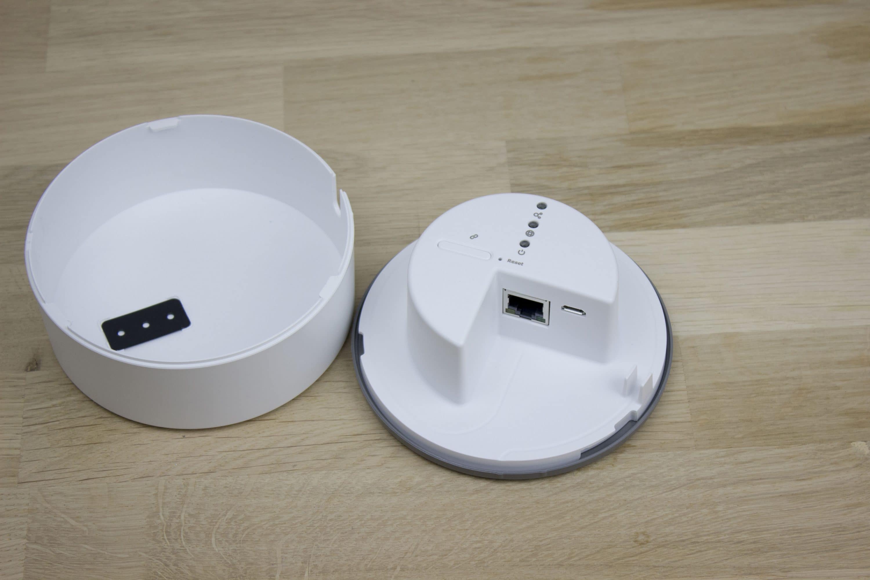 Um die Tradfri-Lampen per App zu steuern, ist es Voraussetzung das Tradfri Gateway zu verwenden. Dieser wird per LAN mit dem Router verbunden und ermöglicht so die Verbindung per App. Besonders schön ist das Gehäuse um das Gateway. Im Inneren werden Strom- und LAN-Kabel angeschlossen und können dann noch im Gehäuse untergebracht werden. Ein praktikable Lösung um Kabelsalat zu vermeiden. Seit neuestem ist es auch möglich statt dem Gateway die Phillips Hue Bridge zu verwenden.