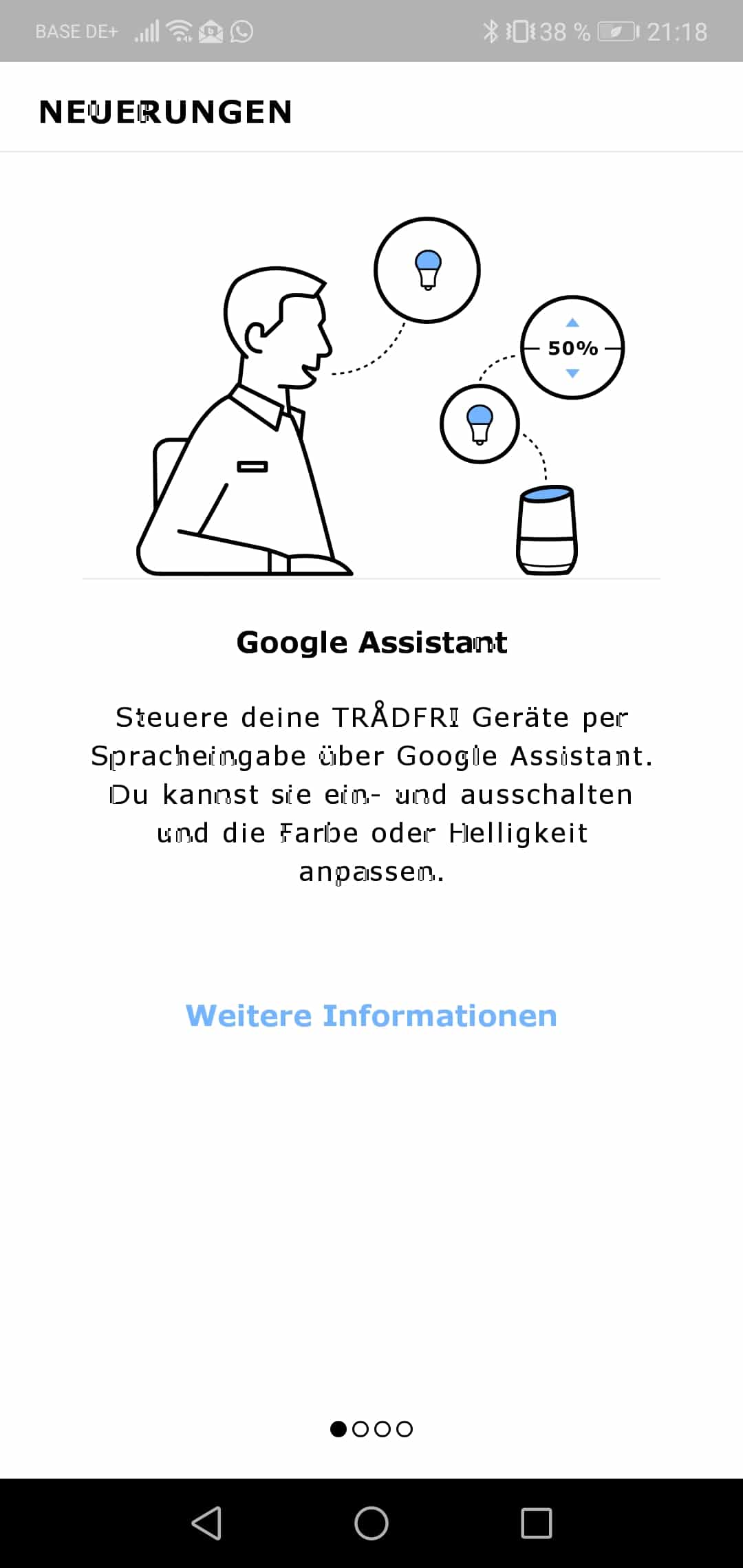 Glücklicherweise kam kurz nach den Tradfri-Produkten von Ikea mein Google Home Mini an. Und glücklicherweise gab es kurz vorher ein Update, dass es ermöglicht auch den Google Home Assisstant zu nutzen. Die Verbindung – wer hätte es gedacht – ist einfach. Google Home-App herunterladen, Produkt auswählen und die Verbindung wird automatisch hergestellt. Voraussetzung ist die installierte Tradfri-App auf dem Smartphone. Mit der App lassen sich einzelne Leuchtelemente auch in Gruppen zusammen fassen. Außerdem lässt sich die Farbe der LED etwas präziser einstellen als mit der Fernbedienung.