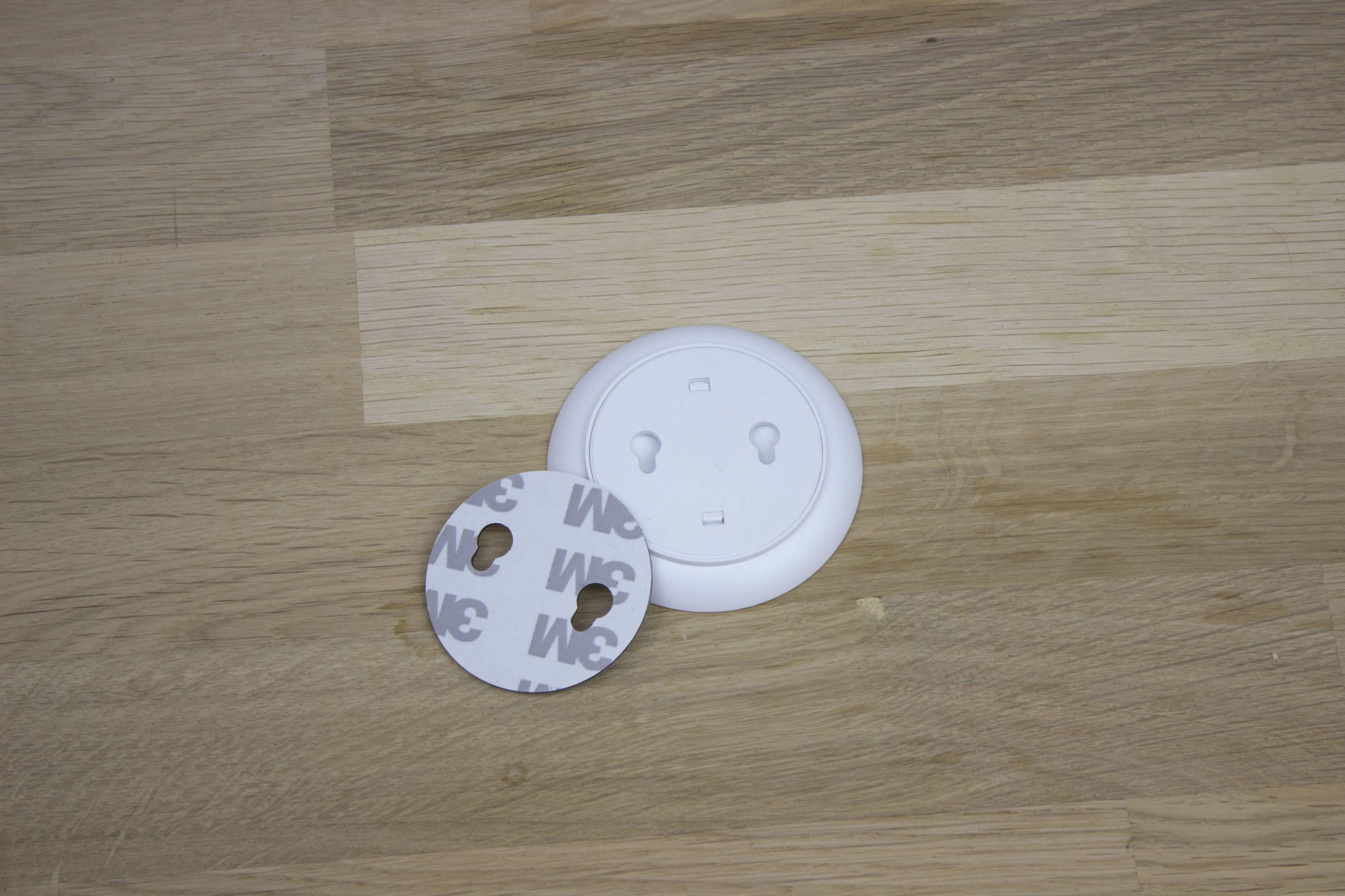 Im Lieferumfang ist einmal natürlich Fernbedienung enthalten. Mit dabei ist eine Basis, mit der wir die Fernbedienung auch an die Wand hängen können. Falls ihr keine Löcher in die Wand machen möchtet, ist auch ein Klebepad beilegend. Die Verbindungsreichweite ist durchaus angenehm. Innerhalb der Wohnung (Altbau mit sehr dicken Wänden) konnten wir auch in sechs bis sieben Metern Entfernung durch mehrere Wände hinweg ohne Probleme das Licht bedienen.