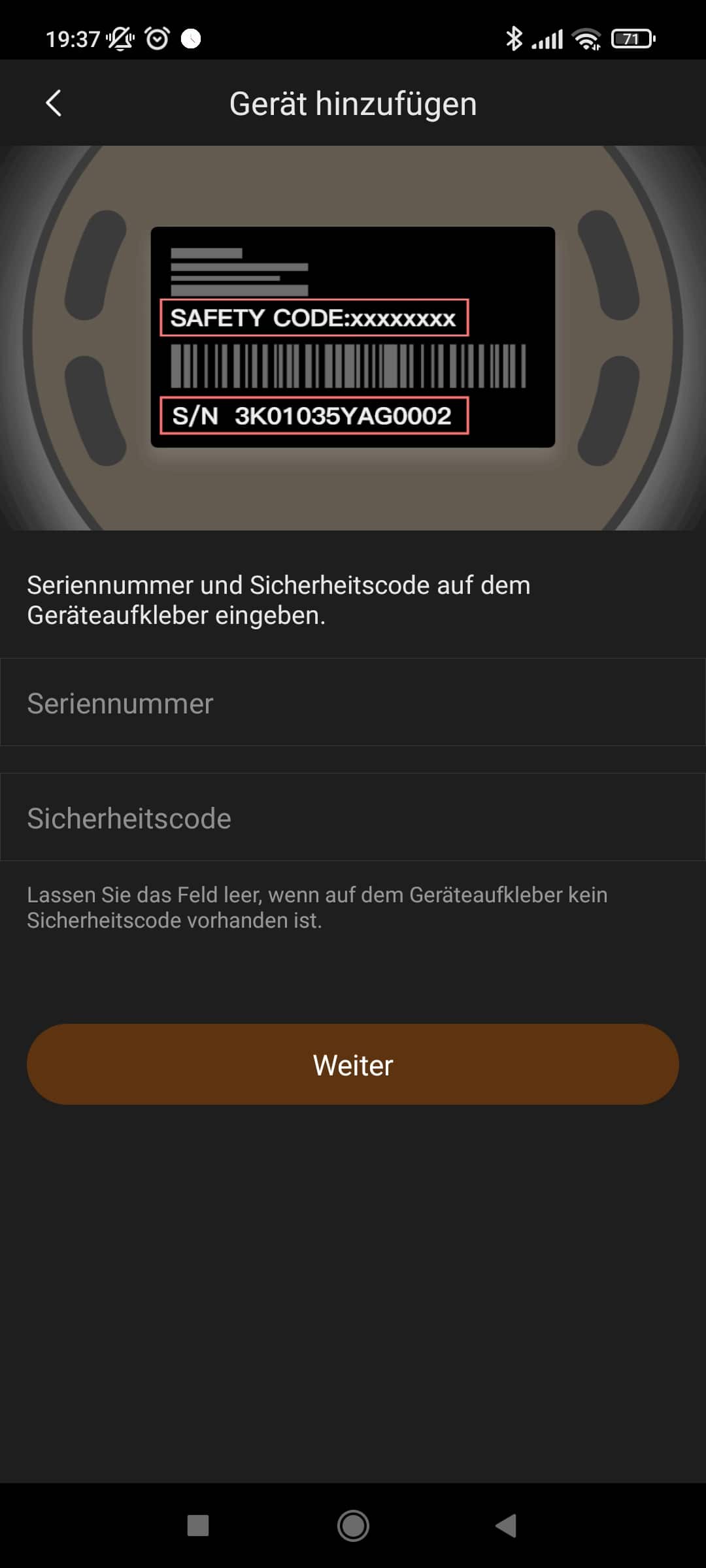 Auch bei IMOU kommen wir nicht um ein Konto herum. Nachdem wir dieses schnell erstellt haben, geht es auch schon weiter. Wichtig: Eine aktive WLAN-Verbindung ist immer vorausgesetzt! Um die Kamera hinzuzufügen müsst ihr einen Blick auf die Bullet 2 4MP werfen. Auf dieser findet ihr den Safety Code, sowie die Seriennummer, die wir im Einrichtungsprozess eingeben müssen.