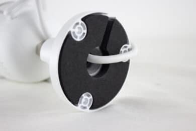 Nach der Montage muss selbstverständlich noch die Stromversorgung sichergestellt werden. Für das LAN-Kabel ist ein Abdichtungsset mitgeliefert, für das Stromkabel nicht. Vermutlich kann das Stromkabel somit auch einfach für Außen verwendet werden, darauf haben wir in unserem Test aber verzichtet. Nach dem Anschließen und der Einrichtung, zu der wir später kommen, ist die Kamera startbereit und zeichnet auf. Unabhängig von der Wetterfestigkeit sind wir also an eine Stromversorgung angewiesen und können uns nicht den Platz frei aussuchen.